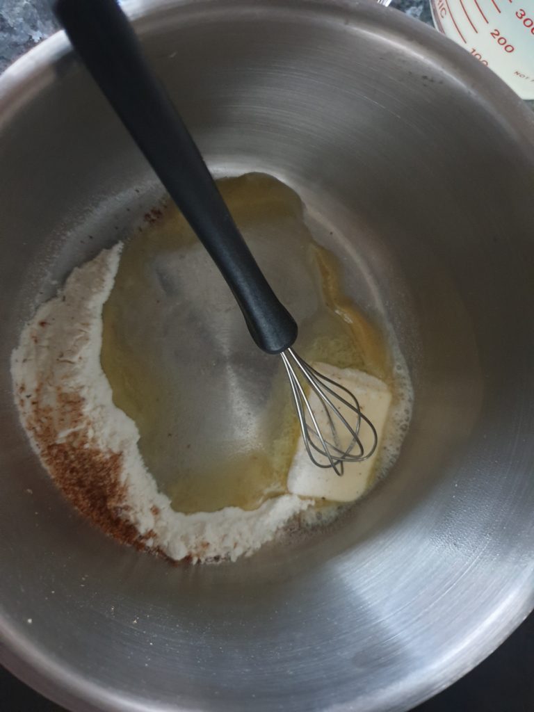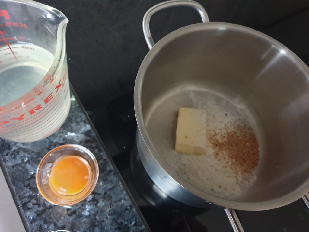 - etwas Bacon, vorgebraten in kleinen Stückchen zum Bestreuen (wir haben immer ein wenig gebratene Baconstückchen im Haus)