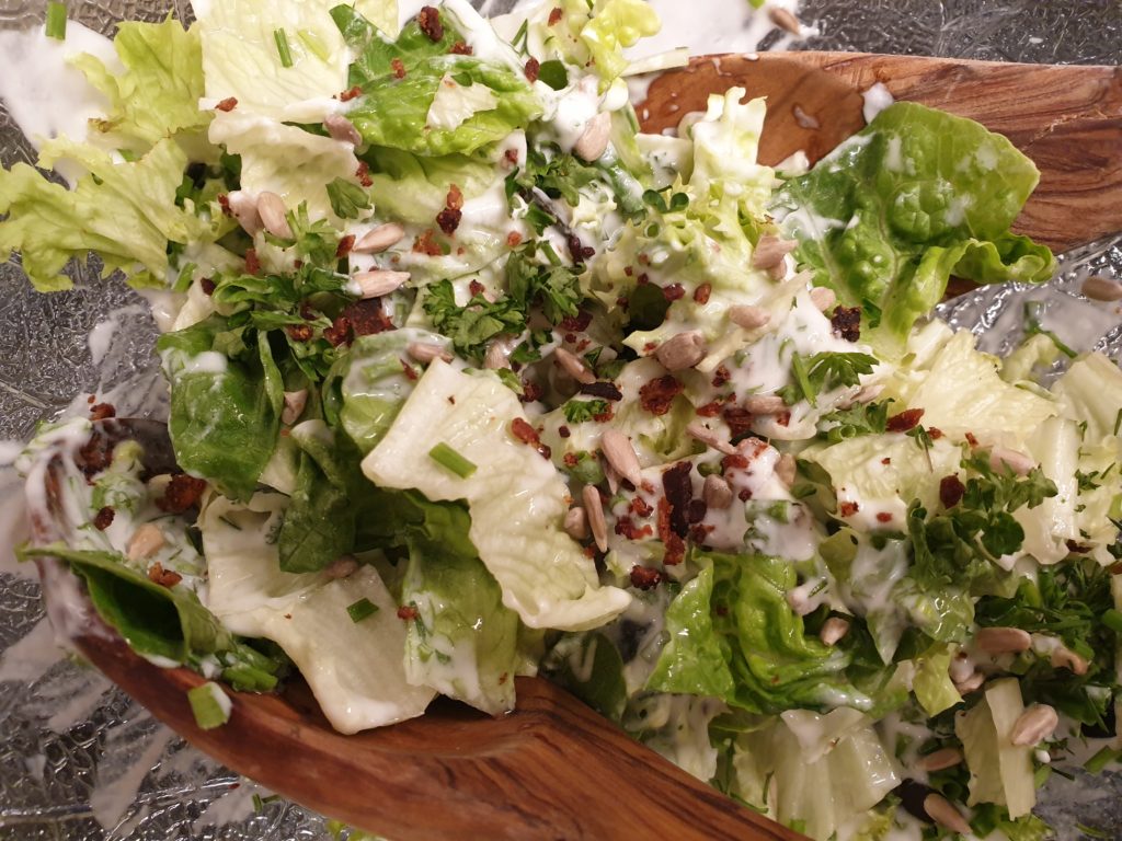 Als Beilage schmeckt dazu grüner Salat mit Joghurtsauce (siehe Rezept).