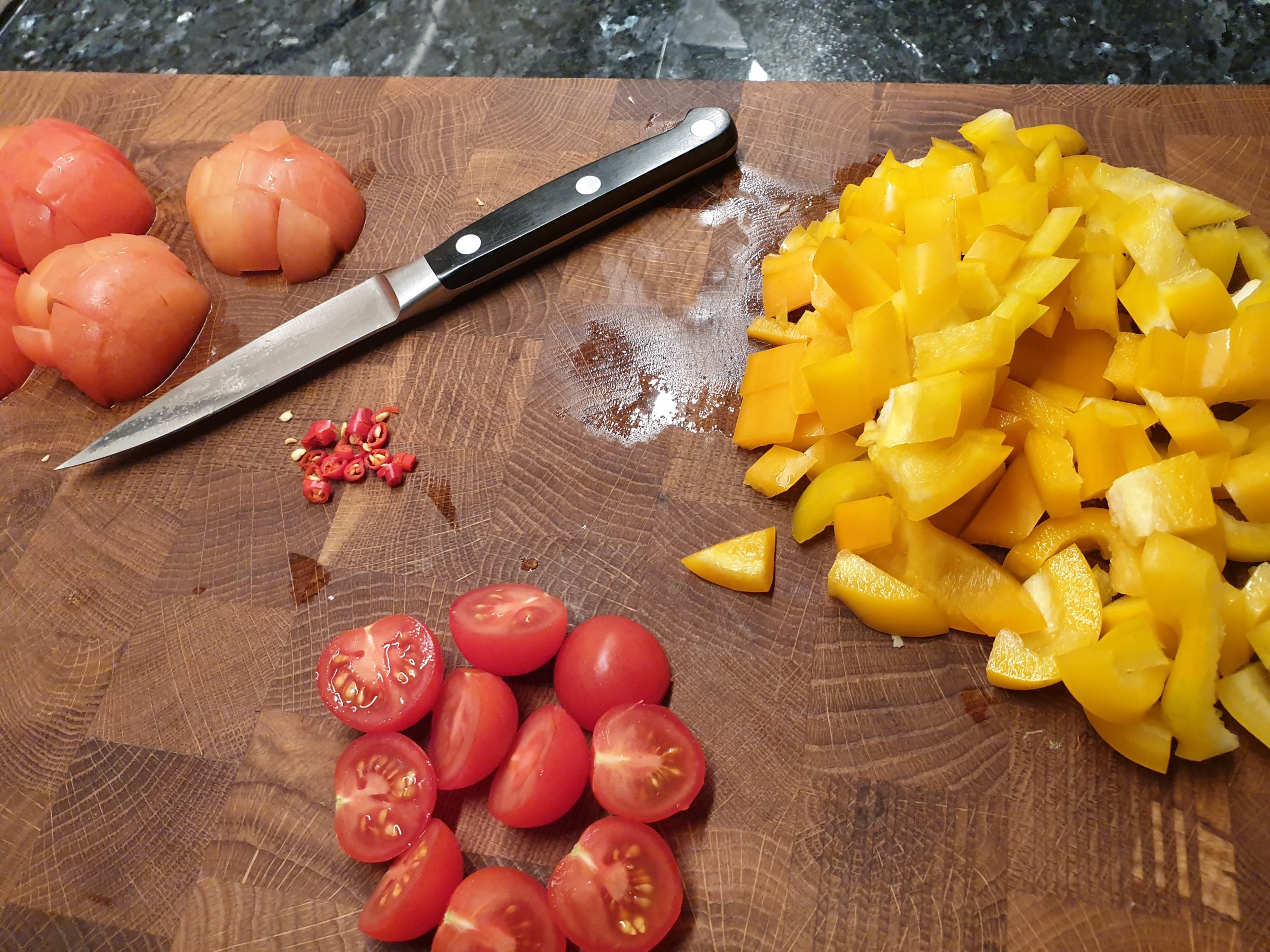 - 1 Paprika, in mundgerechte Stücke geschnitten