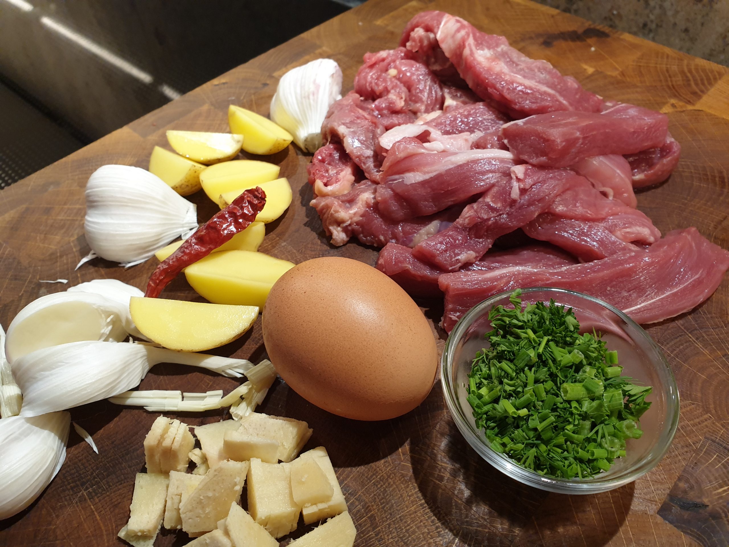 - 200 g Schweinefleisch, z.B. Sauenfilet – diverse Rassen (Duroc, usw.) beeinflussen das Ergebnis.