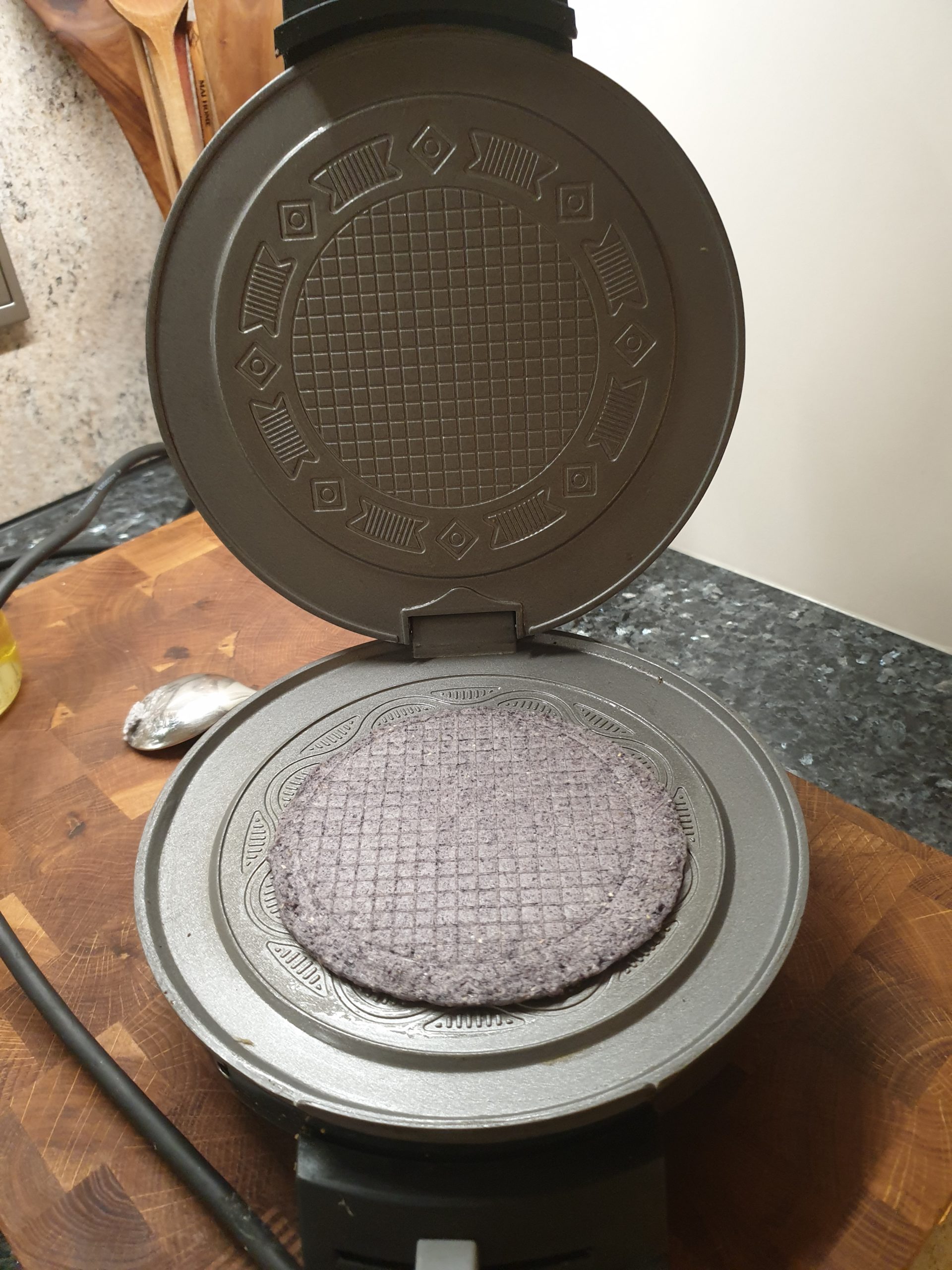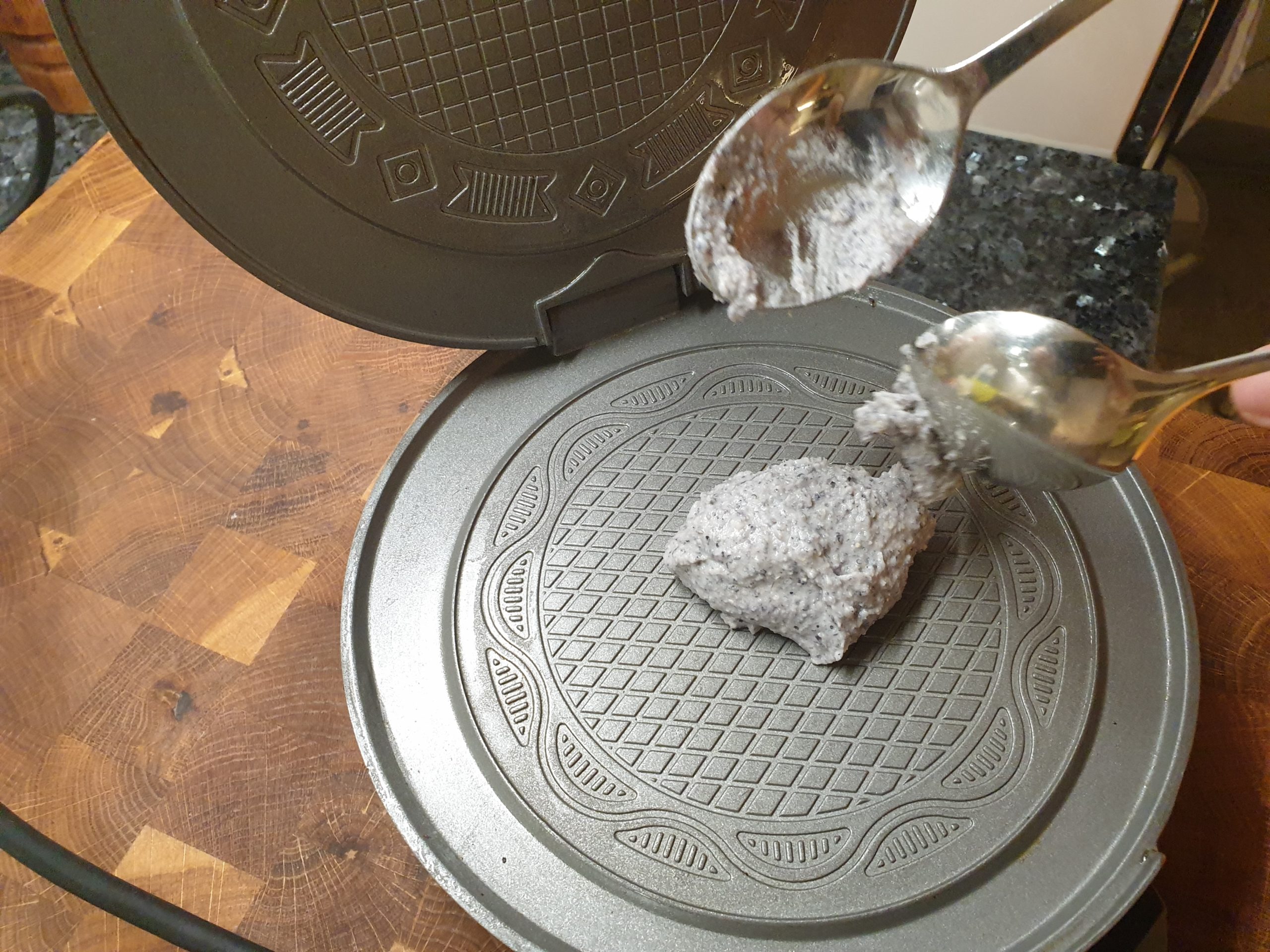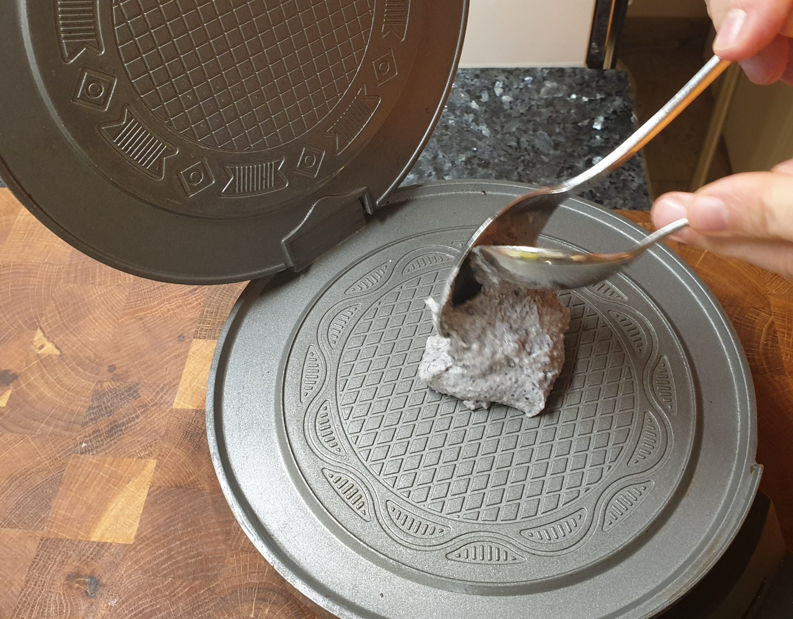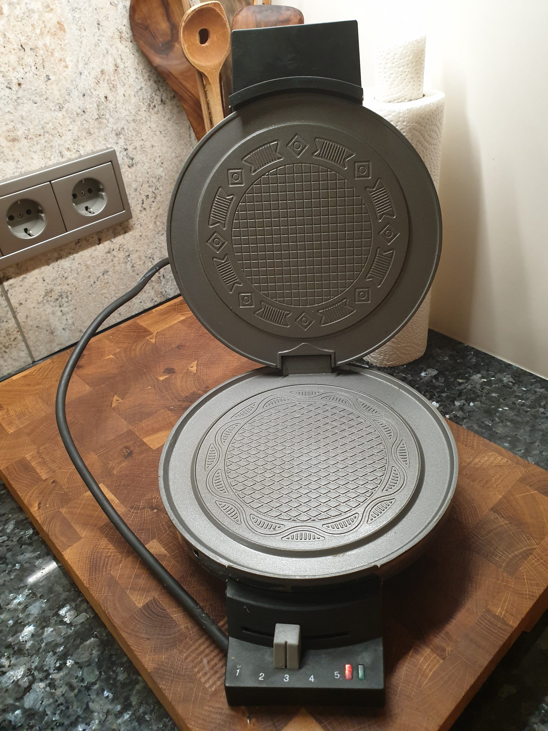 Für alle, die es nicht kennen: So sieht ein Neujahrskucheneisen aus. Wir zeigen in einem anderen Rezept, wie man Neujahrskuchen oder Eiswaffeln damit backen kann.