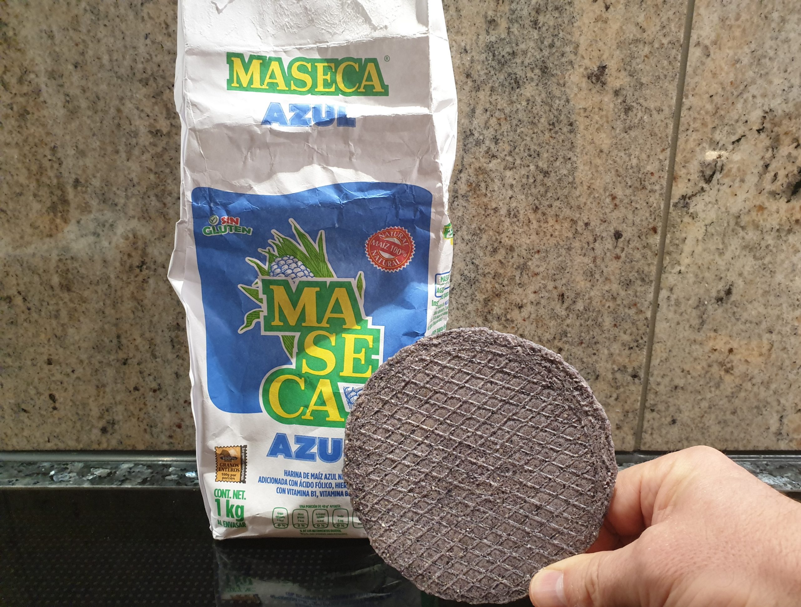 Maismehle und Wasser zu einem zähen Brei anrühren. Neujahrskucheneisen vorheizen und mit zwei Esslöffeln ein Häufchen der Teigmasse auf das Eisen geben. Eisen schließen und backen, bis das Gerät den Abschluss meldet. Gerät öffnen und Tortilla entnehmen. Diese tragen jetzt das hübsche Muster des Kucheneisens. Die Tortilla können eher weich oder härter hergestellt werden, je nach eingestellter Backzeit des Waffeleisens.