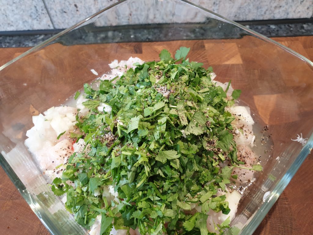 Tipp 2: Anstelle des Fisches einmal rohe Shrimp oder alternativ auch Nordseekrabben verwenden. Die Shrimp werden dabei zerkleinert und kurz angebraten, bis sie rosig werden, dann erst mariniert. Das Ganze ergibt eine schöne Vorspeise oder kann auch als Fingerfood in kleinen Schälchen serviert werden.