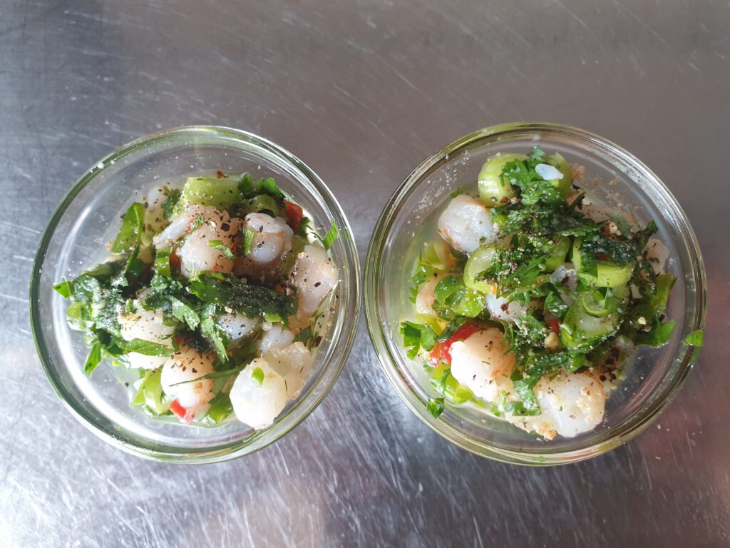 […] Als Vorspeise vielleicht Shrimp Cevice? Die rohen, frischen Shrimps werden dabei zerkleinert, sie können vor dem Bad in der Marinade auch […]
