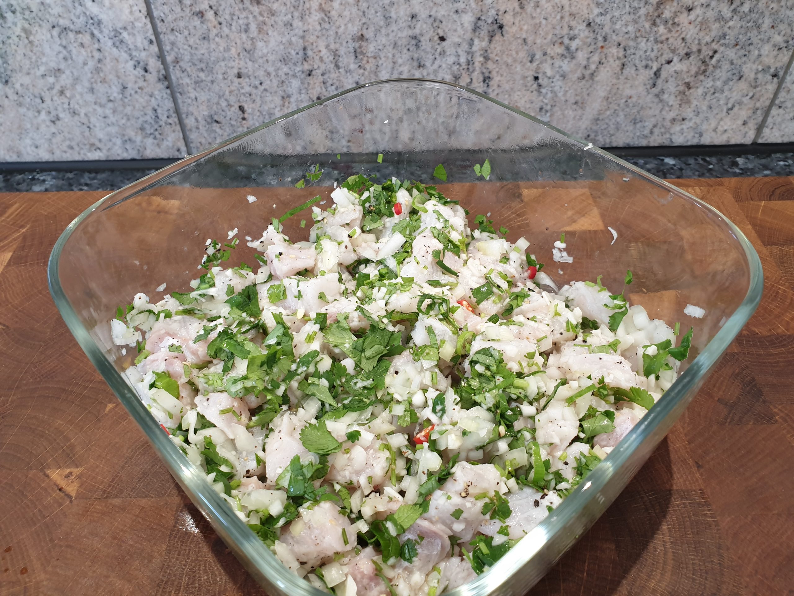 Tipp 2: Anstelle des Fisches einmal rohe Shrimp oder alternativ auch Nordseekrabben verwenden. Die Shrimp werden dabei zerkleinert und kurz angebraten, bis sie rosig werden, dann erst mariniert. Das Ganze ergibt eine schöne Vorspeise oder kann auch als Fingerfood in kleinen Schälchen serviert werden.