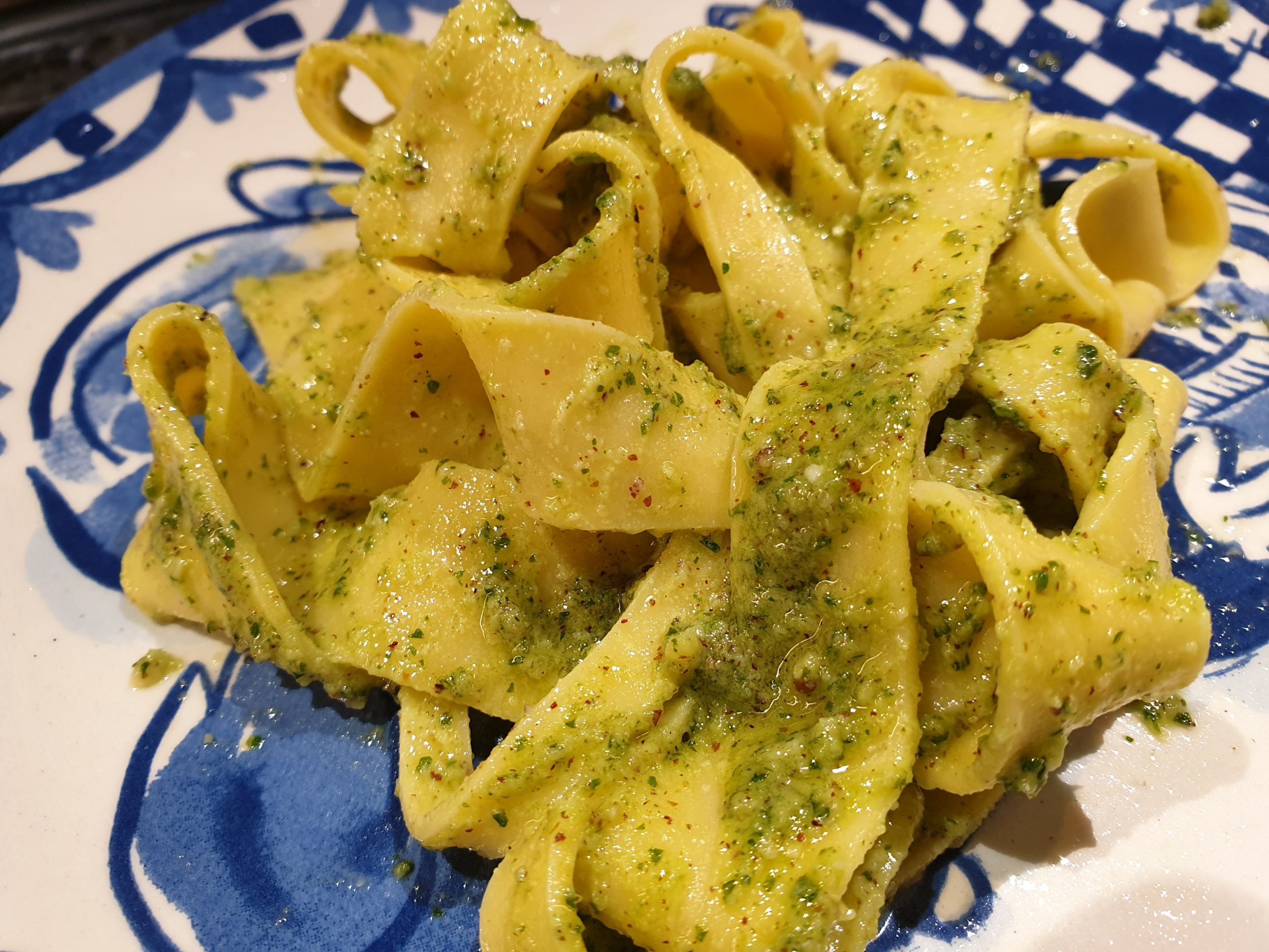 Pesto wird gern zu Nudeln genommen, die Zubereitungsart kommt aus der Region von Genua. Selbstgemachtes Pesto hat den Vorteil, frische Zutaten zu verwerten, die nicht zum Zweck der Haltbarmachung erhitzt wurden.