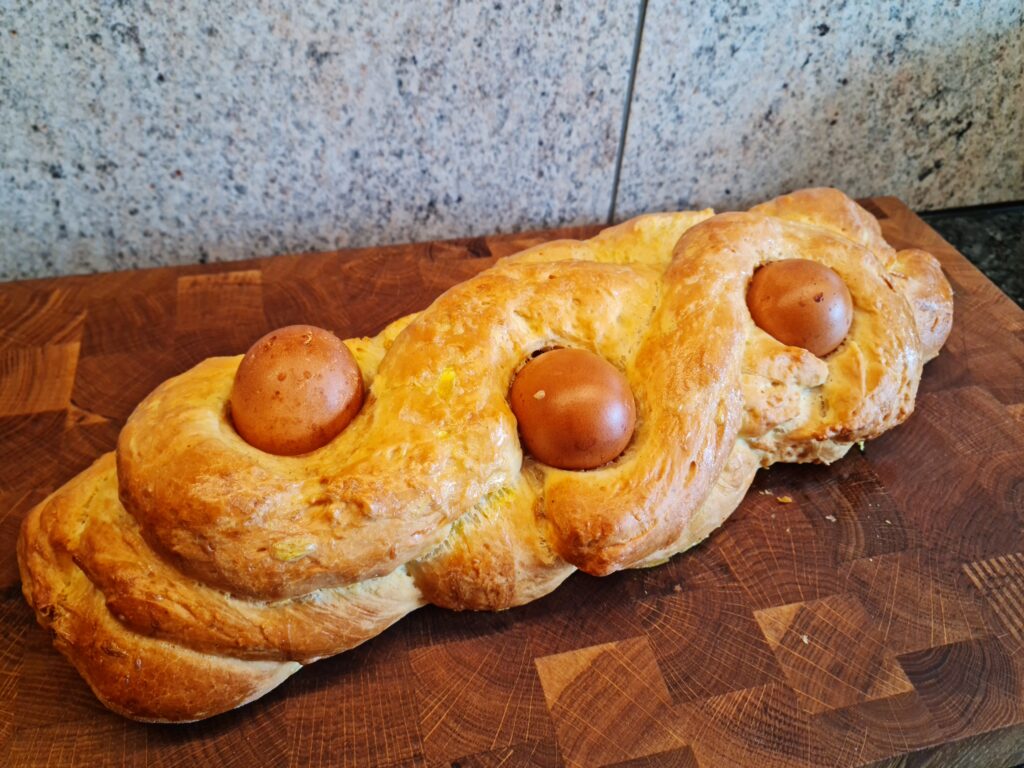 Wir zeigen eine einfache abgewandelte Variante, die unsere Kinder gern mögen. Im Originalrezept werden Machlepi (das gemahlene Innere aus Kern der Felsenkirsche) und Mastix als Gewürze eingesetzt. Die Gewürze sind schwer zu erhalten, den Geschmack mag kann als Ersatz einen halben Teelöffel einer Mischung aus geriebener Muskatnuss und dem Mark einer Vanilleschote, sowie die abgeriebene Schale einer Bio-Zitrone nutzen.