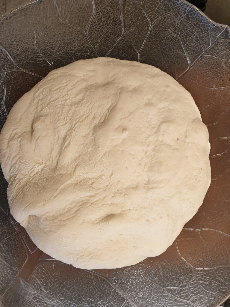 Die Hefe im lauwarmen Wasser auflösen. Das Mehl und das Salz zusammen mischen und dann alles mit einem Holzlöffel (sonst ist der Teig zu klebrig) zusammen rühren.