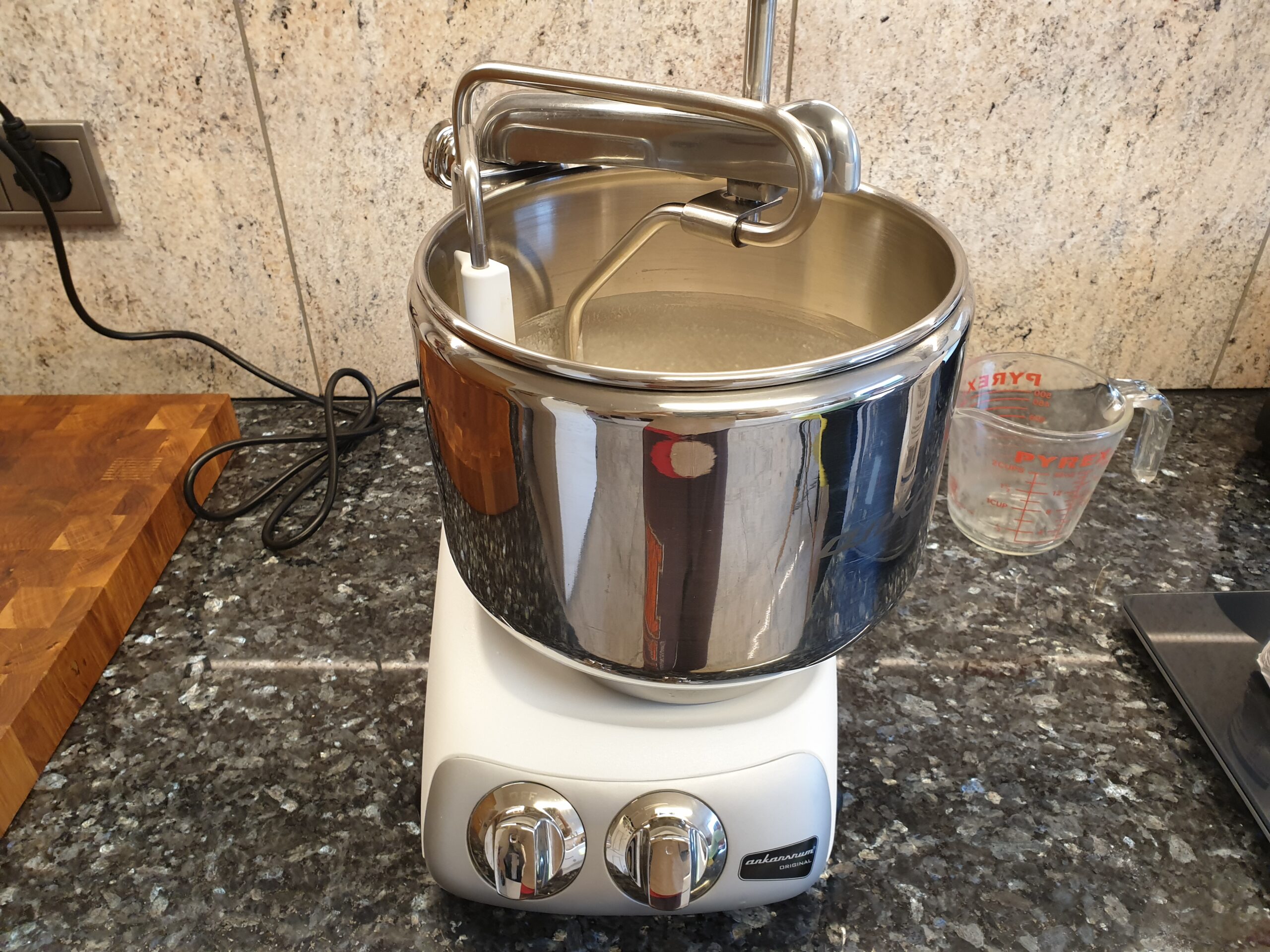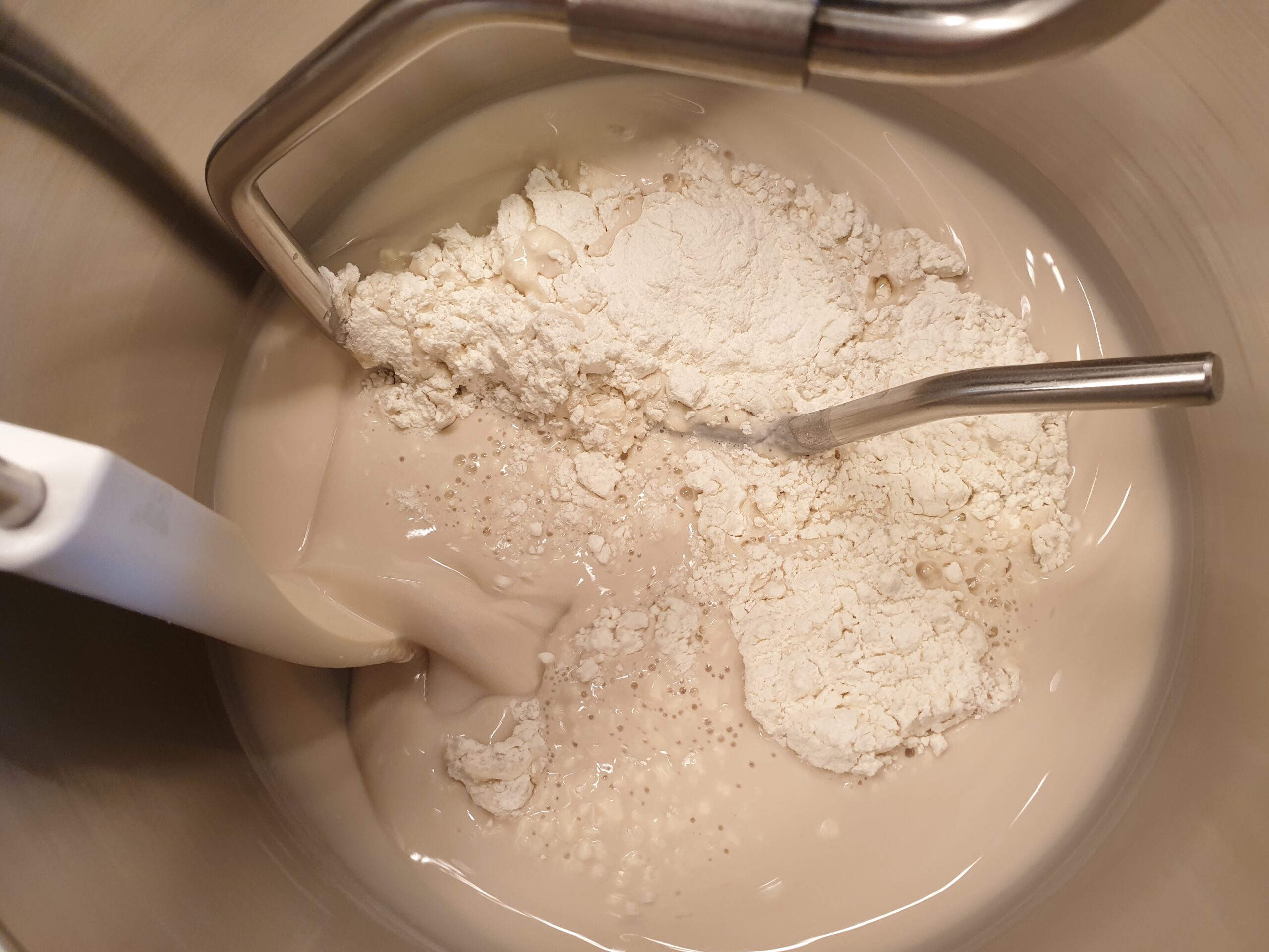 - 160 g lauwarmes Wasser (bis zu 190 g für ein etwas luftigeres Ergebnis)