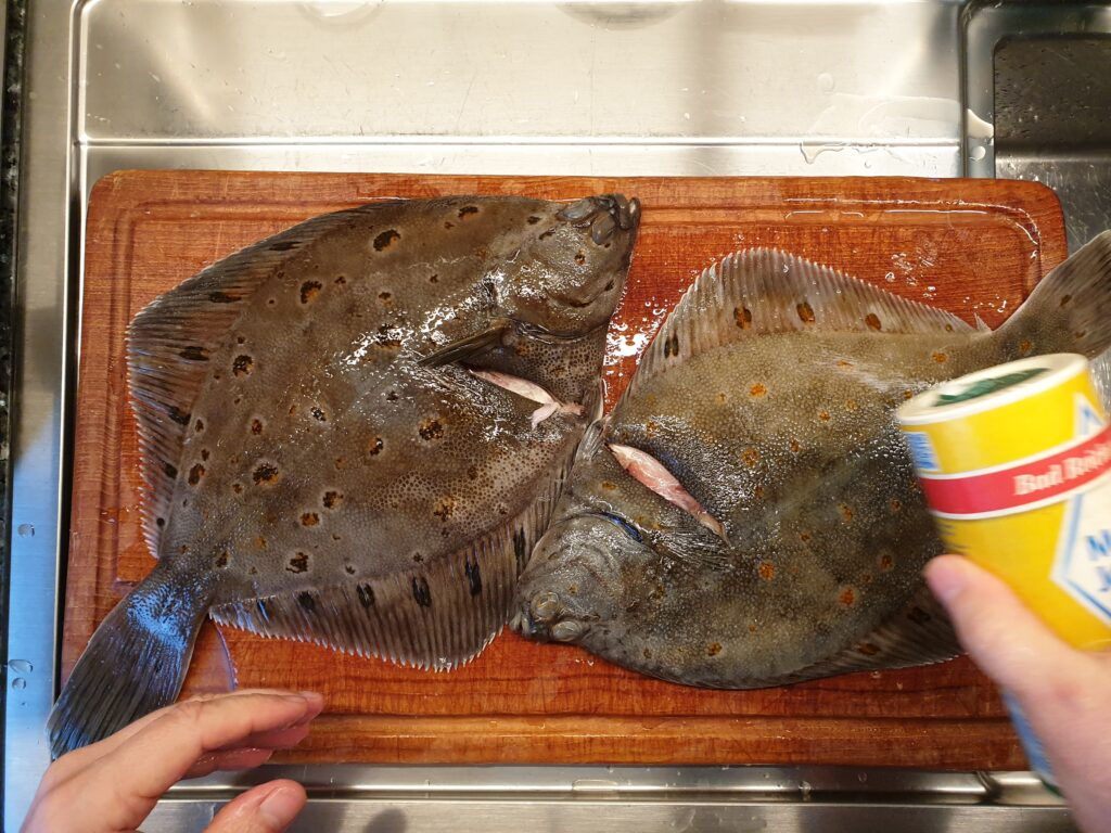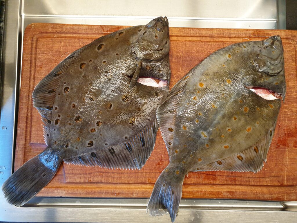 - 2 fangfrische ganze Schollen