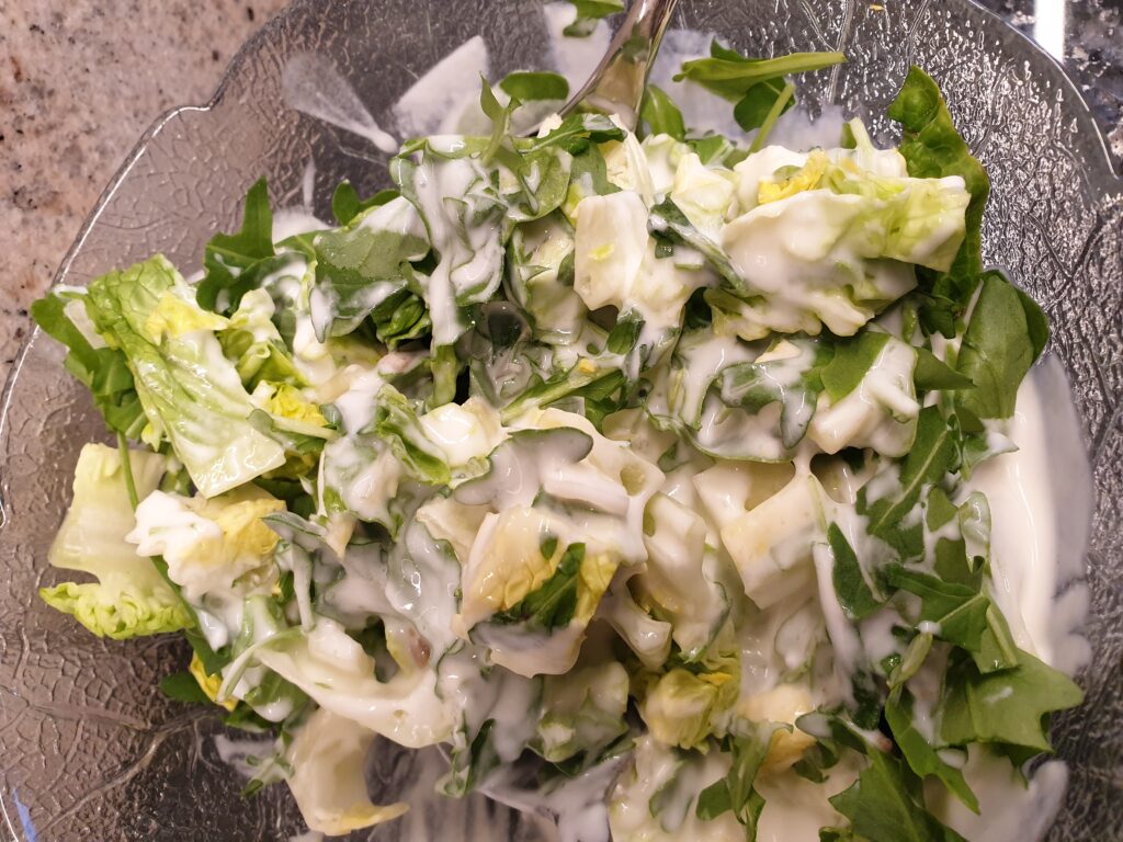 - 1 Romanasalat, zubereitet mit Joghurtsauce (siehe Rezept)