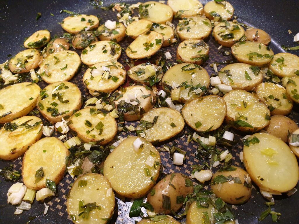 - 6 kleine Kartoffeln, fein geschnitten