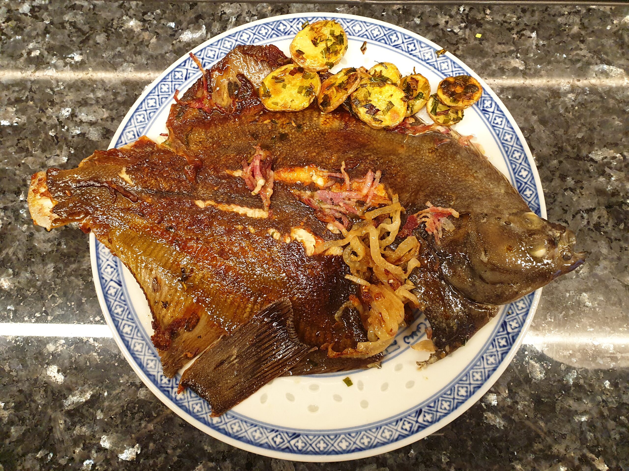 In Norddeutschland kennt sie jedes Kind, Schollen ganz oder als Filet (für Eilige, die keine Gräten mögen) mit Kartoffelpüree oder Bratkartoffeln, Zwiebeln und Speck (oder Bacon).