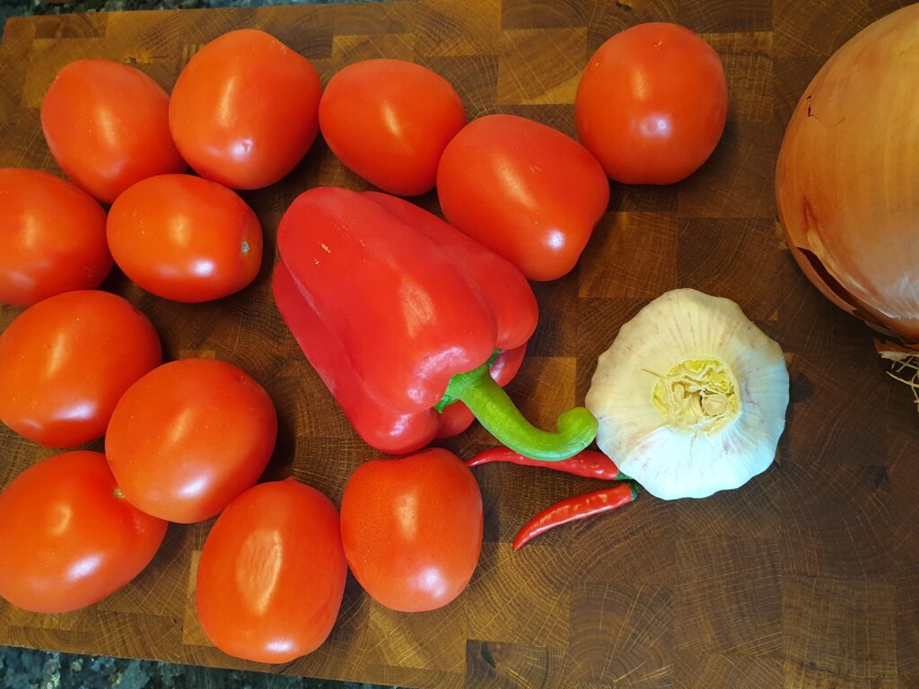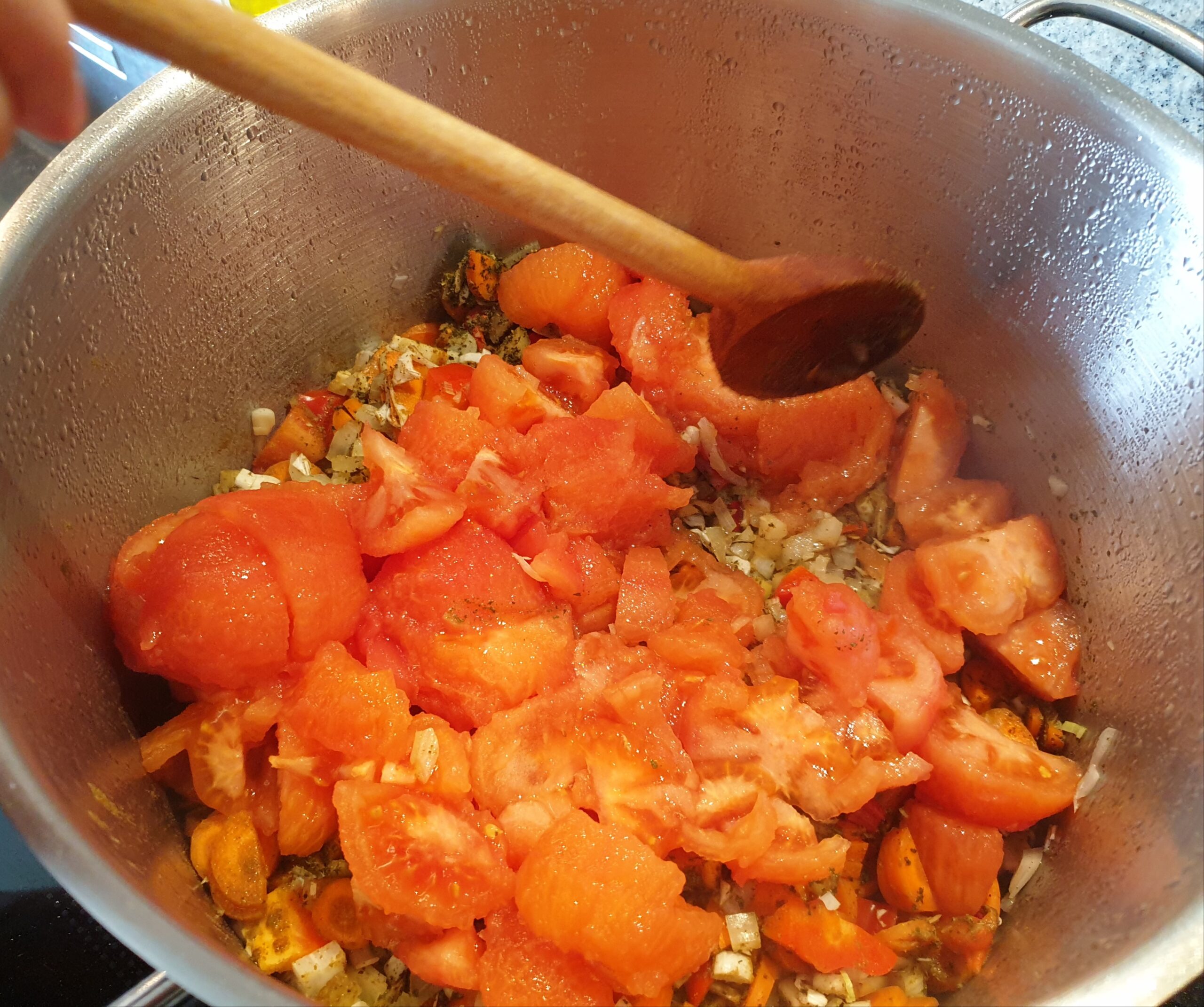 - 10 Tomaten, überbrüht, gehäutet und gewürfelt