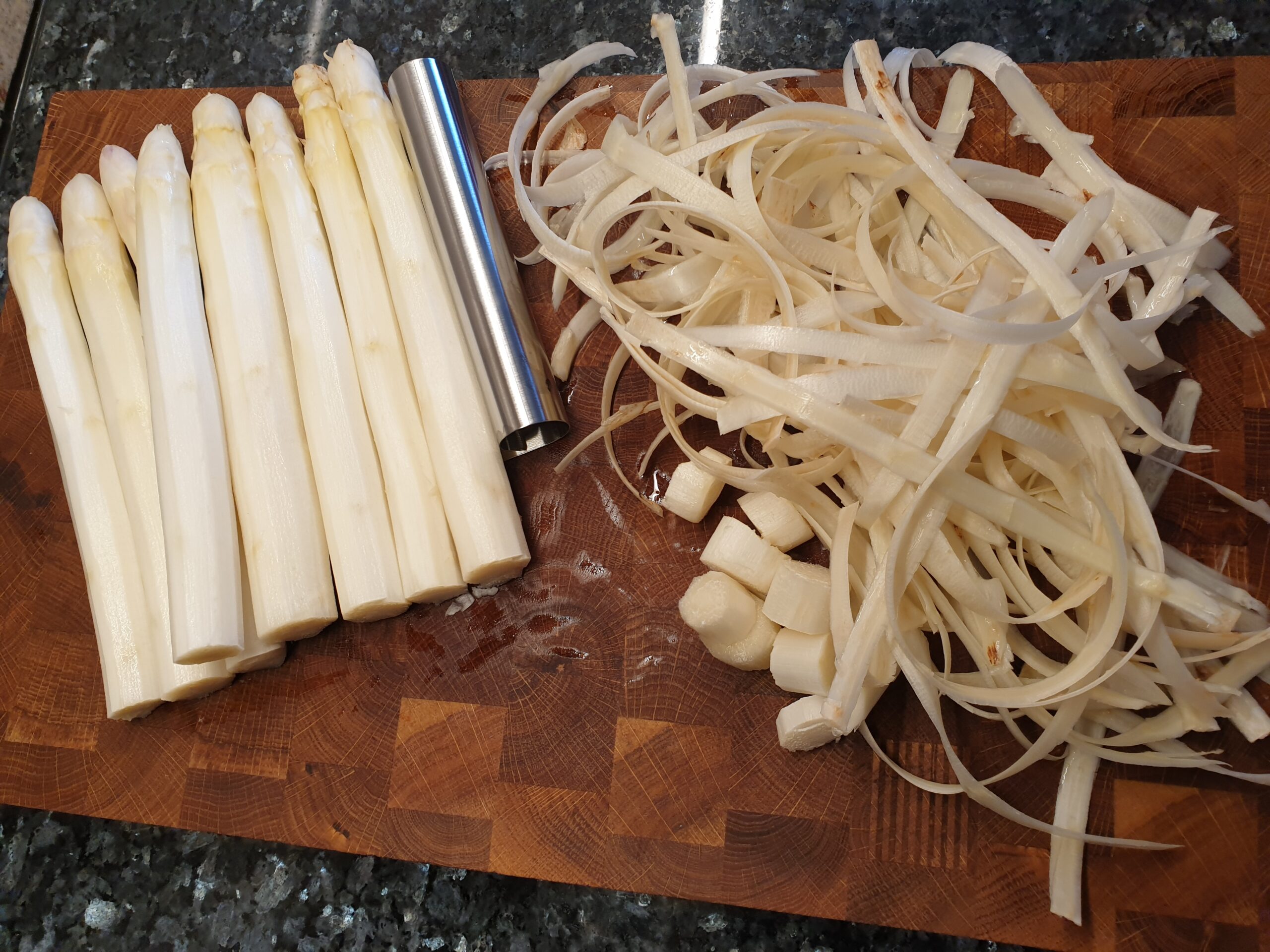 Tipp 2: Die Spargelschalen und abgeschnittenen unteren Enden geben eine gute Spargelcremesuppe (siehe Rezept).