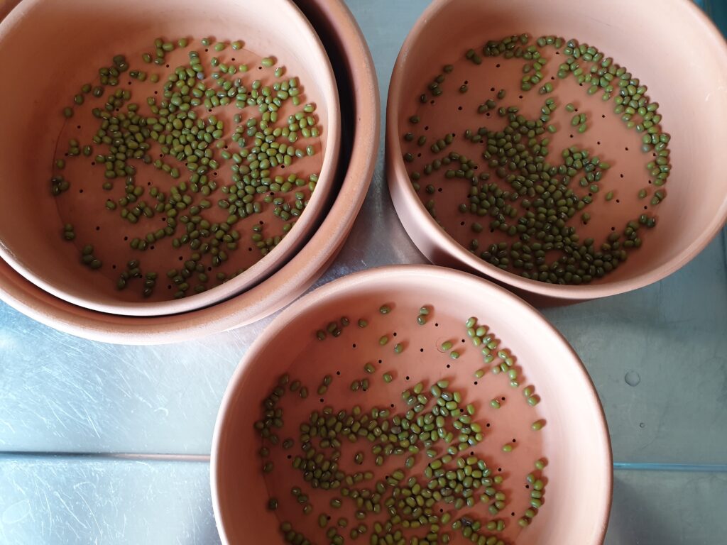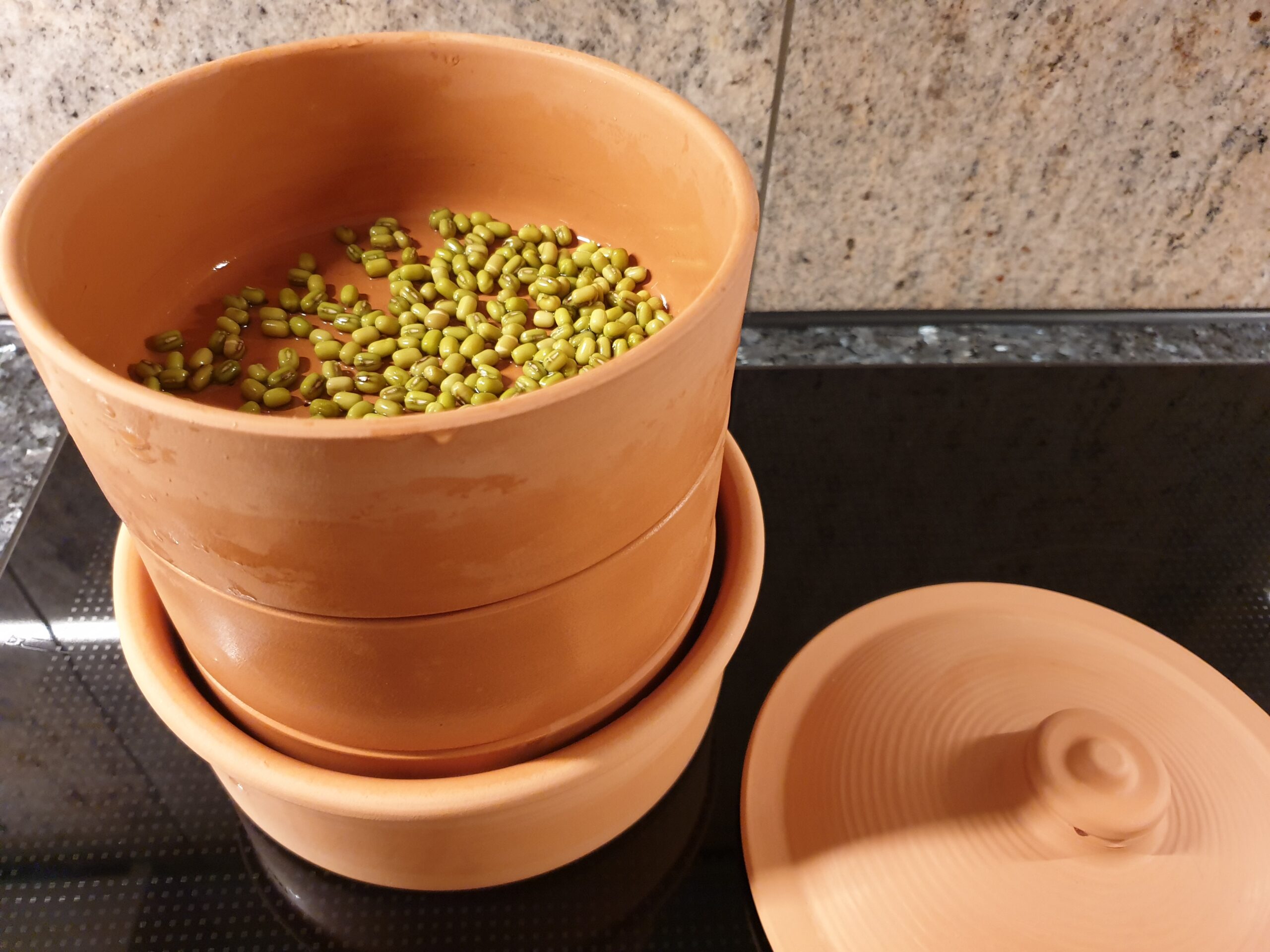 Sprossen waschen und ins Keimgerät geben, wir arbeiten mit einem Tonkeimgerät. Je nach Sorte und Angabe zuvor acht bis zwölf Stunden einweichen oder ohne Einweichen starten. Täglich ein bis zweimal wässern, bis die Keimlinge fertig zum Naschen und Nutzen sind. Werden etwas grüne Keimlinge gewünscht, den Deckel zum letzten Tag hin offen lassen. Die meisten der Sprossen bieten ein leicht nussiges Aroma, Knoblauchsprossen zeigen unverkennbar einen leichten Knoblauchgeschmack, Fenchelsprossen erinnern im Geschmack leicht an Anis, Kresse bringt Frische an Salate und Brotaufstriche. Guten Appetit!