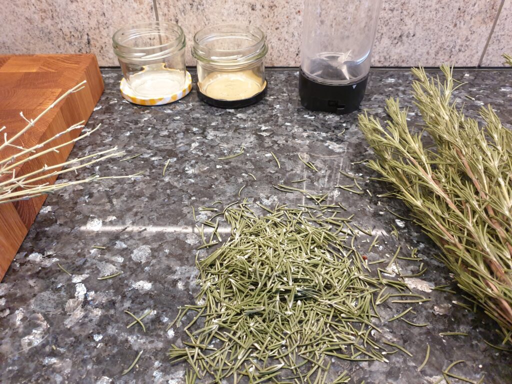 Kräuter wie getrockneter Rosmarin oder getrocknete Chilischoten können im Mixer pulverisiert werden.