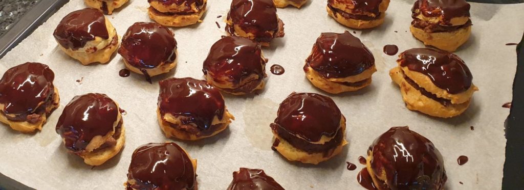 Eier mit Zucker zusammen rühren, bis die Mischung hell wird. Mehl hinzu fügen und dann die mit der Schokolade aufgekochte und etwas abgekühlte Milch dazu geben. In einen Topf geben und aufkochen, bis eine feste Creme entsteht. Mit Frischhaltefolie abdecken und im Kühlschank aufbewahren. Für Eclair als Kuchenfüllung oder als Dessertgrundlage ist es sinnvoll, die Creme als Erstes zuzubereiten.