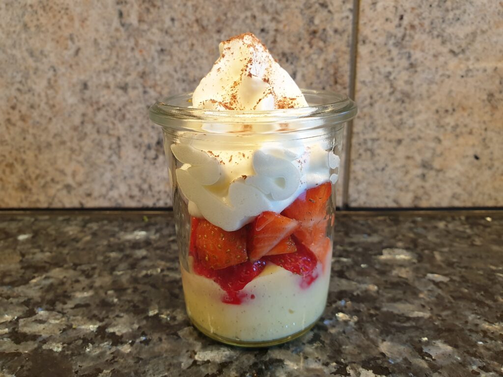 […] Die Mischung schmeckt gut mit frischen Erdbeeren und Vanillepudding (siehe Rezept), garniert mit Streuseln von Bitterschokolade, wie unten […]