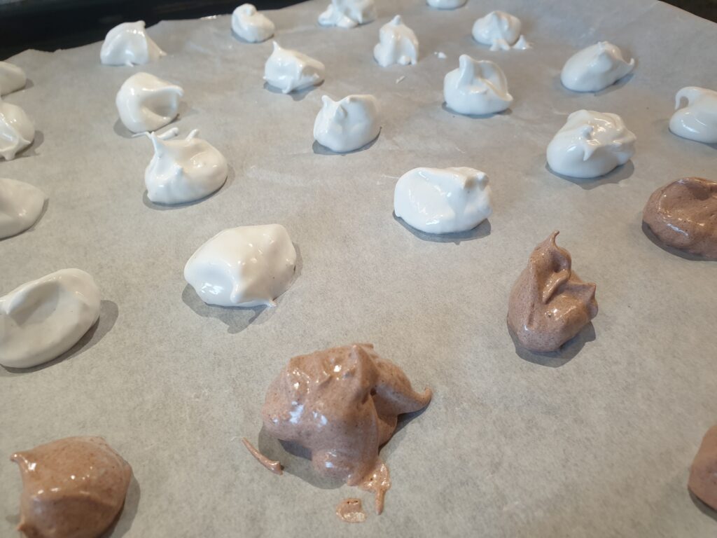 Baiser sind schnell aus beim Kochen übrig gebliebenen Eiweißresten hergestellt, diese dienen so noch der Verfeinerung verschiedenster Speisen, je nach Geschmacksrichtung. Wir stellen meist sehr kleine Baiser her, die später vielseitig zur Dekoration oder für eine weitere Geschmacksrichtung, andere Farbe oder unterschiedliche Textur in Desserts, Kuchen, Torten und sonstigen Speisen weiter verwendet werden können. Luftdicht aufbewahrt halten sie sich gut zur späteren Verwendung auf Desserts, wie zum Beispiel Blaubeeren oder Erdbeeren auf Naturjoghurt mit Limetten Espuma oder Erdbeer – Espuma auf Joghurt (siehe Rezept).