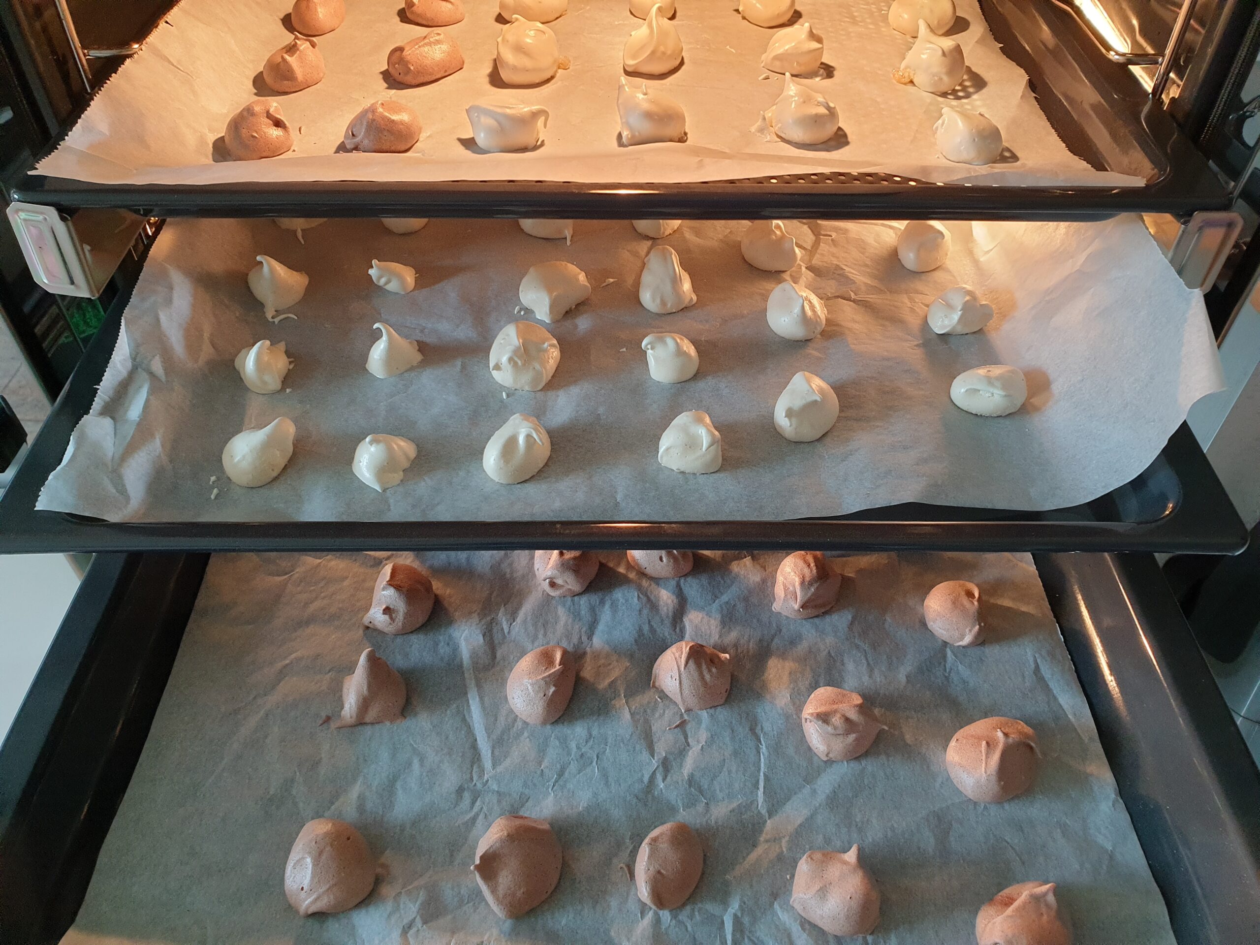 Baiser sind schnell aus beim Kochen übrig gebliebenen Eiweißresten hergestellt, diese dienen so noch der Verfeinerung verschiedenster Speisen, je nach Geschmacksrichtung. Wir stellen meist sehr kleine Baiser her, die später vielseitig zur Dekoration oder für eine weitere Geschmacksrichtung, andere Farbe oder unterschiedliche Textur in Desserts, Kuchen, Torten und sonstigen Speisen weiter verwendet werden können. Luftdicht aufbewahrt halten sie sich gut zur späteren Verwendung auf Desserts, wie zum Beispiel Blaubeeren oder Erdbeeren auf Naturjoghurt mit Limetten Espuma oder Erdbeer – Espuma auf Joghurt (siehe Rezept).