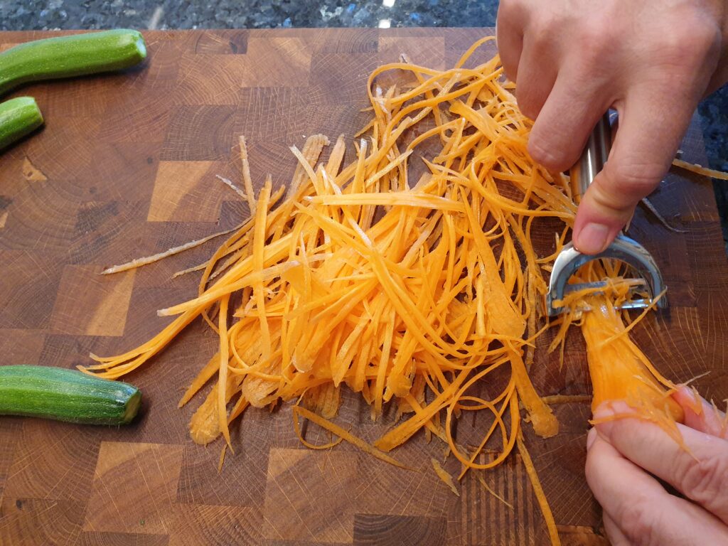 Spaghetti sind immer eine gute Wahl, aber auch Gemüse Spaghetti sind lecker und obendrein gesund. Und wenn im Sommer im Garten Zucchini in Mengen geerntet wird, ist dies Rezept eine schmackhafte Verwertungsoption. Hier sind unsere Zucchini allerdings am Anfang der Saison noch sehr klein …