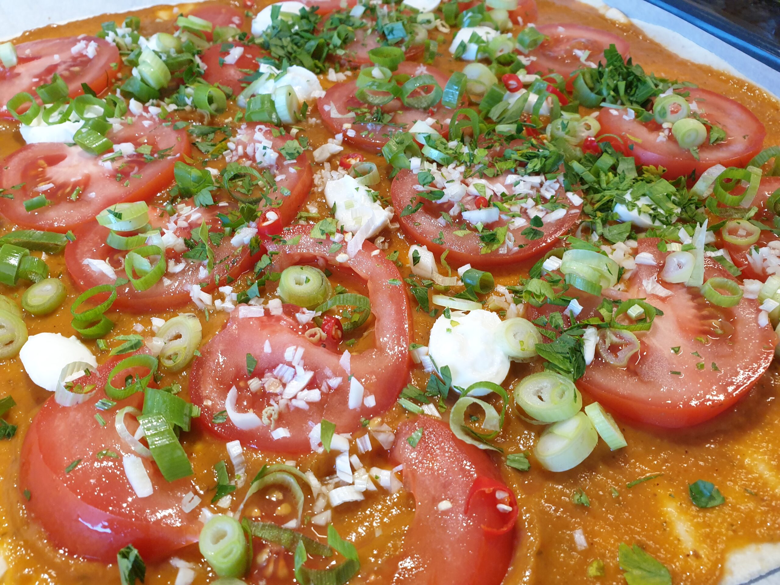 […] 125 ml Tomatensaft oder Pizza Tomatensauce (siehe Rezept) […]