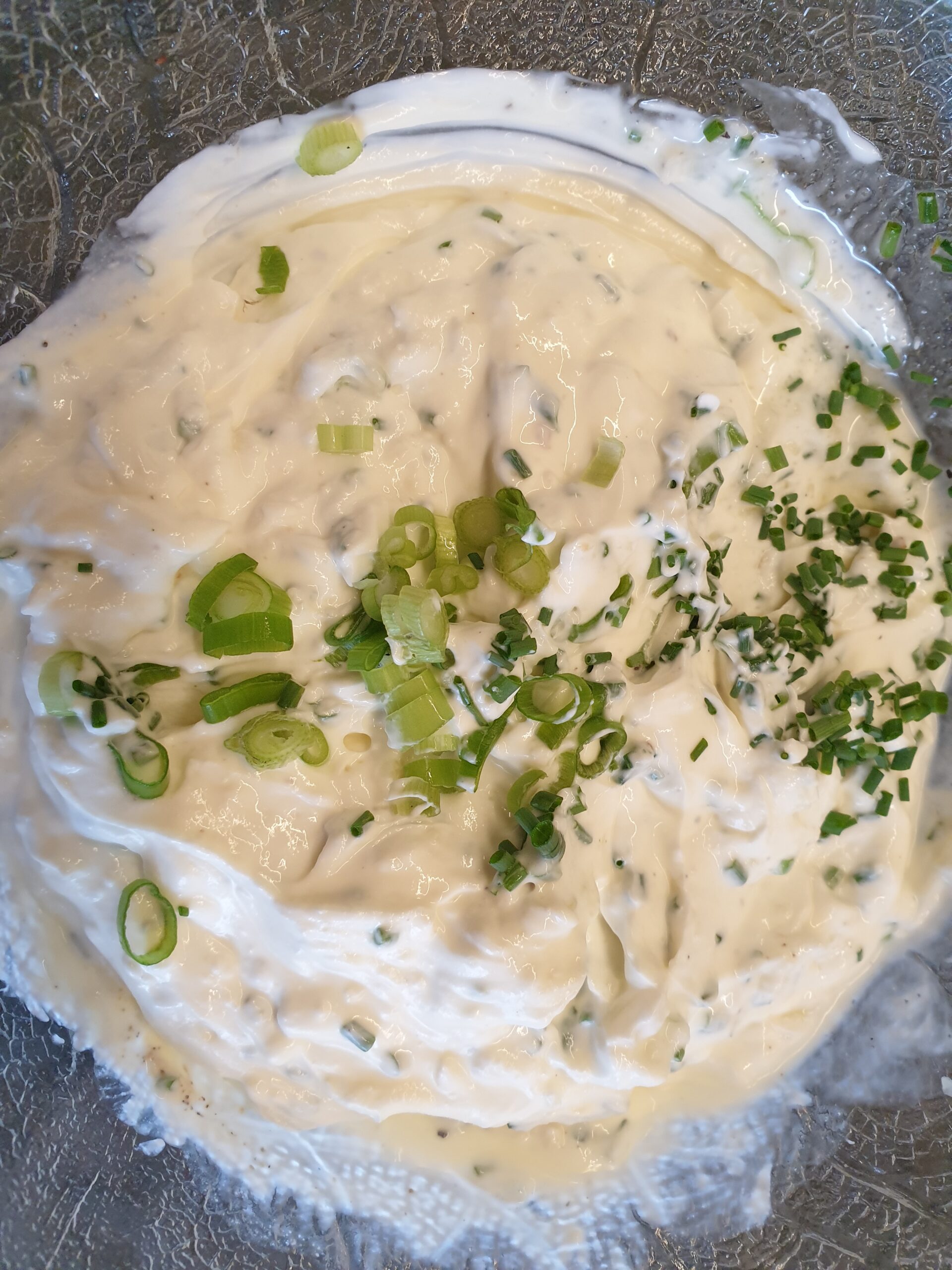 Einfach Quark mit Crème fraîche vermengen, Salz, Gewürze und Kräuter, Knoblauch und Zwiebeln hinzufügen. Ecker zu Ofenkartoffeln oder Kartoffeln (in Alufolie) vom Grill. Guten Appetit.