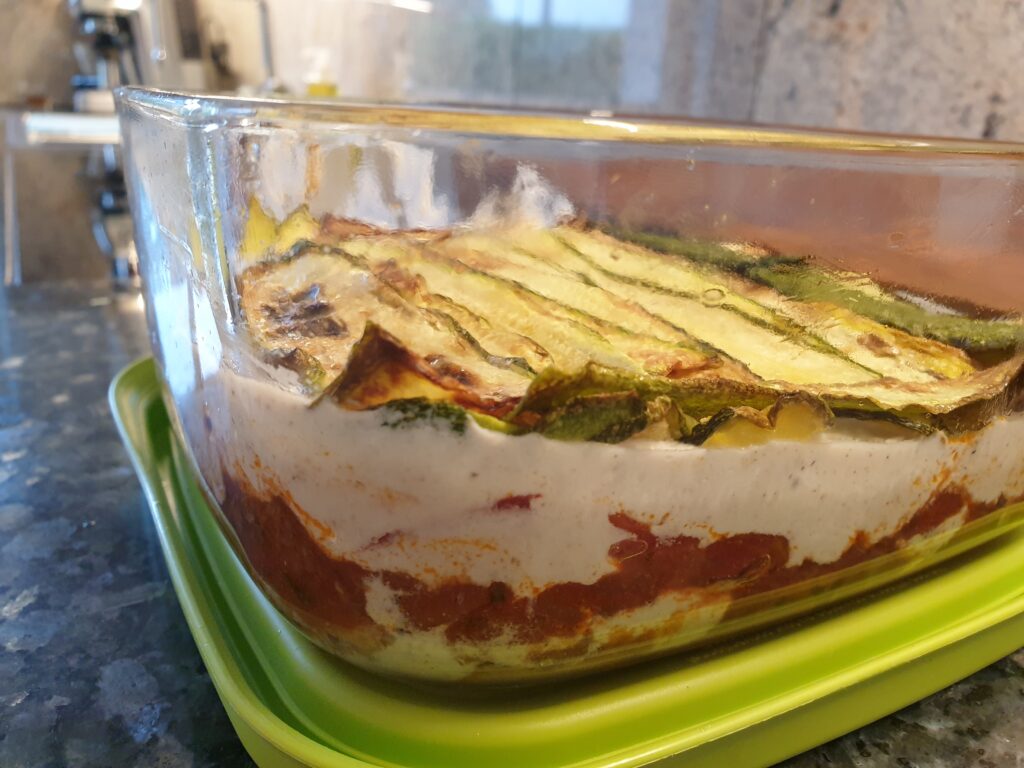 Und noch ein Zucchini Rezept für die reichliche Ernte: Hierbei werden die Zucchini längs geschnitten und vor der Verwendung anstelle von Lasagneplatten angebraten. Tipp: Besonders rasch geht es, wenn die Tomatensauce bereits extra zuvor in größeren Mengen vorbereitet und portionsweise eingefroren wurde, dann kann die Lasagne rasch aufgebaut werden.