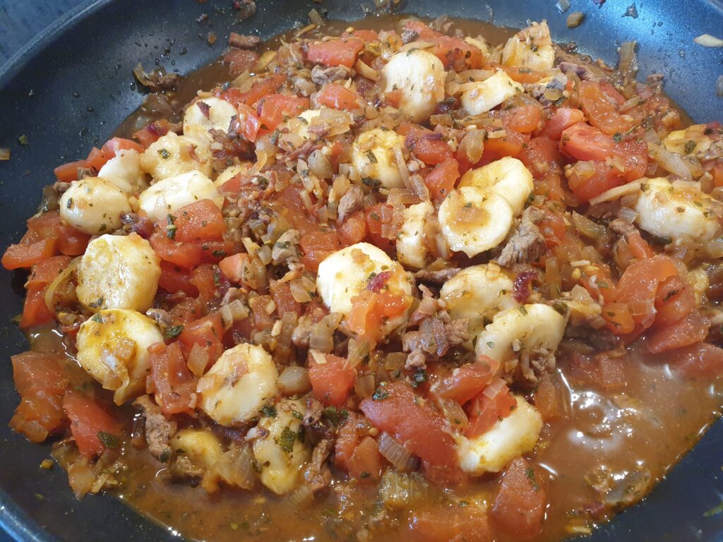 Woher dieses rasch zubereitete Gericht seinen Namen bekommen hat, wissen wir nicht, aber schon unsere Ur-Ur-Großmutter hat es gekannt und zur Freude des Nachwuchses unter dieser Bezeichnung gern serviert. Dabei gab es immer wieder neue Variationen über die Jahre. Möglicherweise war das ursprüngliche Rezept Bobotie, ein südafrikanischer Hackauflauf. Beim unten genannten Rinderhack suchen wir uns unsere gewünschte Fleischqualität meist aus und drehen es selbst durch den Fleischwolf.