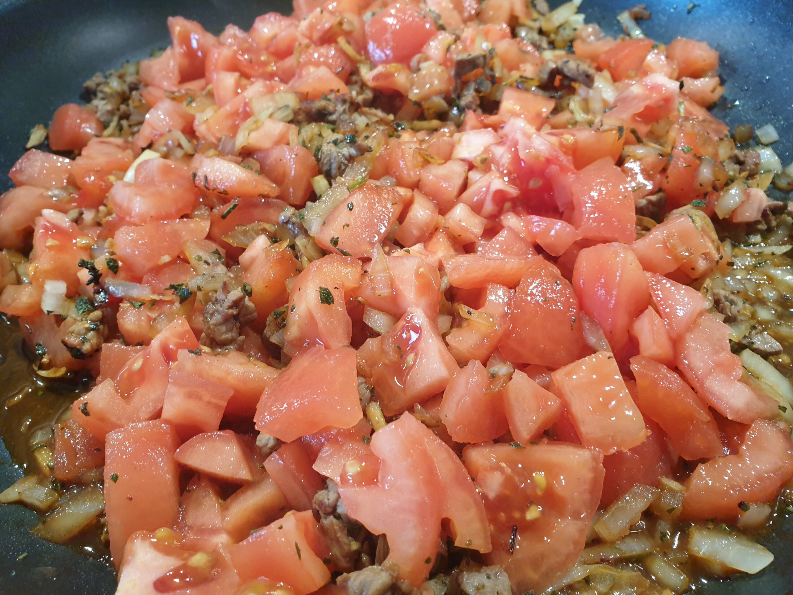 - 6 – 8 Tomaten, gehäutet und gewürfelt