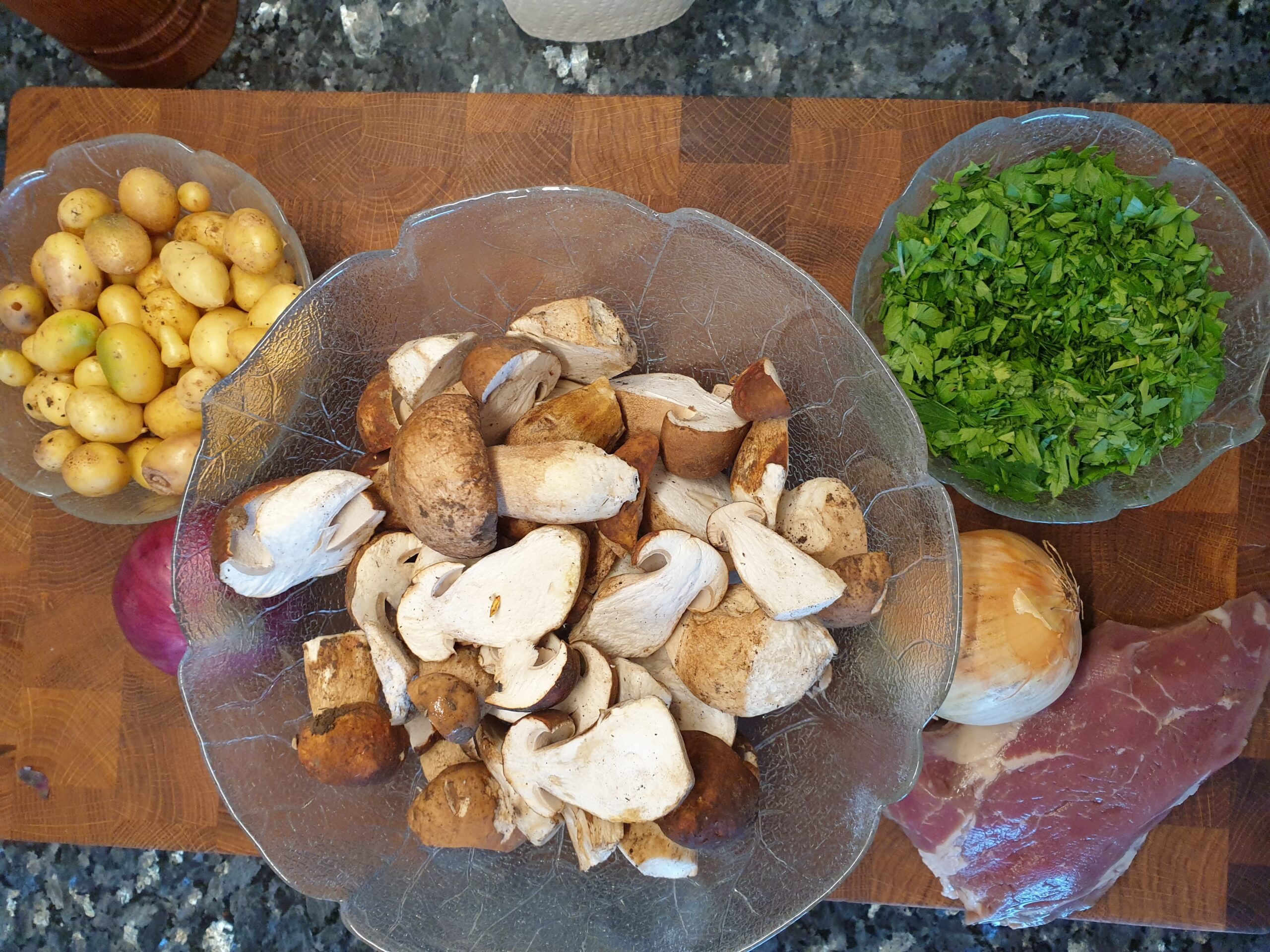 - 500 g frische Steinpilze, in 1 cm dicke Scheiben längs geschnitten