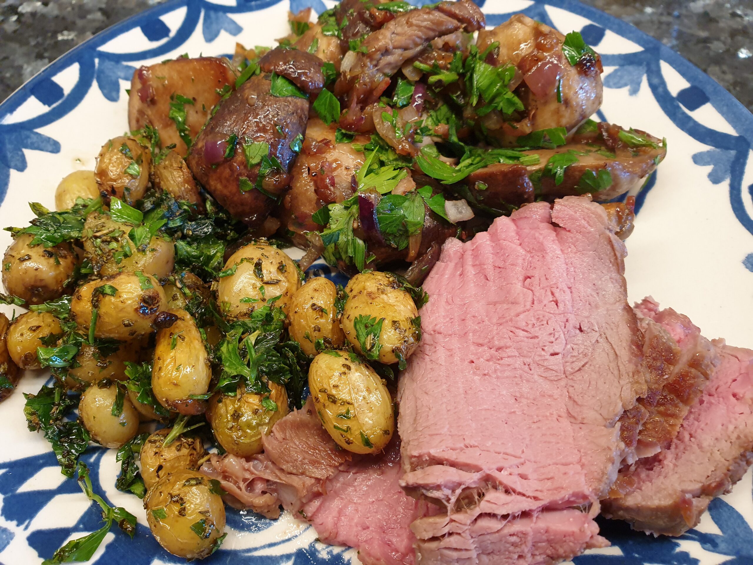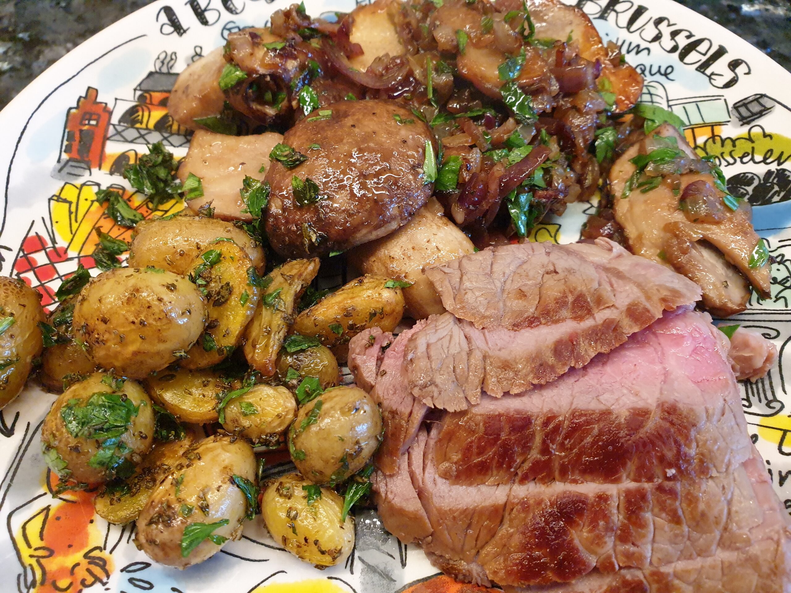 Tipp zum Menü: Wir servieren als Vorspeise Ceviche vom Rotbarsch und als Beilage Feldsalat mit Joghurtsauce sowie frisch geerntete Rosmarin Bratkartoffeln und Rinderhüftsteak.