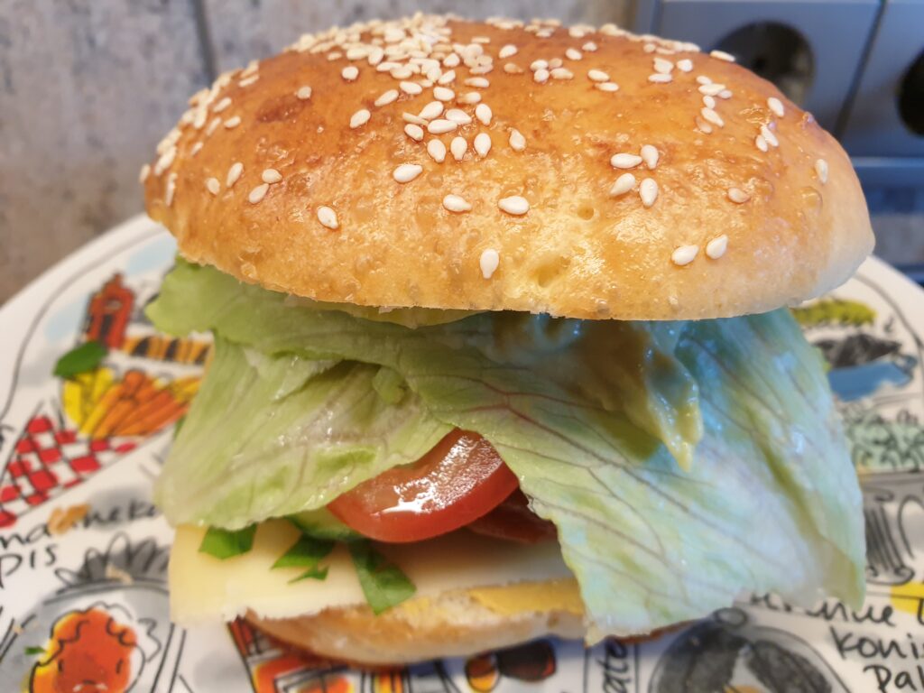 Burger Brötchen brauchen für ihren etwas butterigen Geschmack einen leichten Brioche-Teig, aber nicht so süß. Das Rezept reicht für 10 Brötchen.