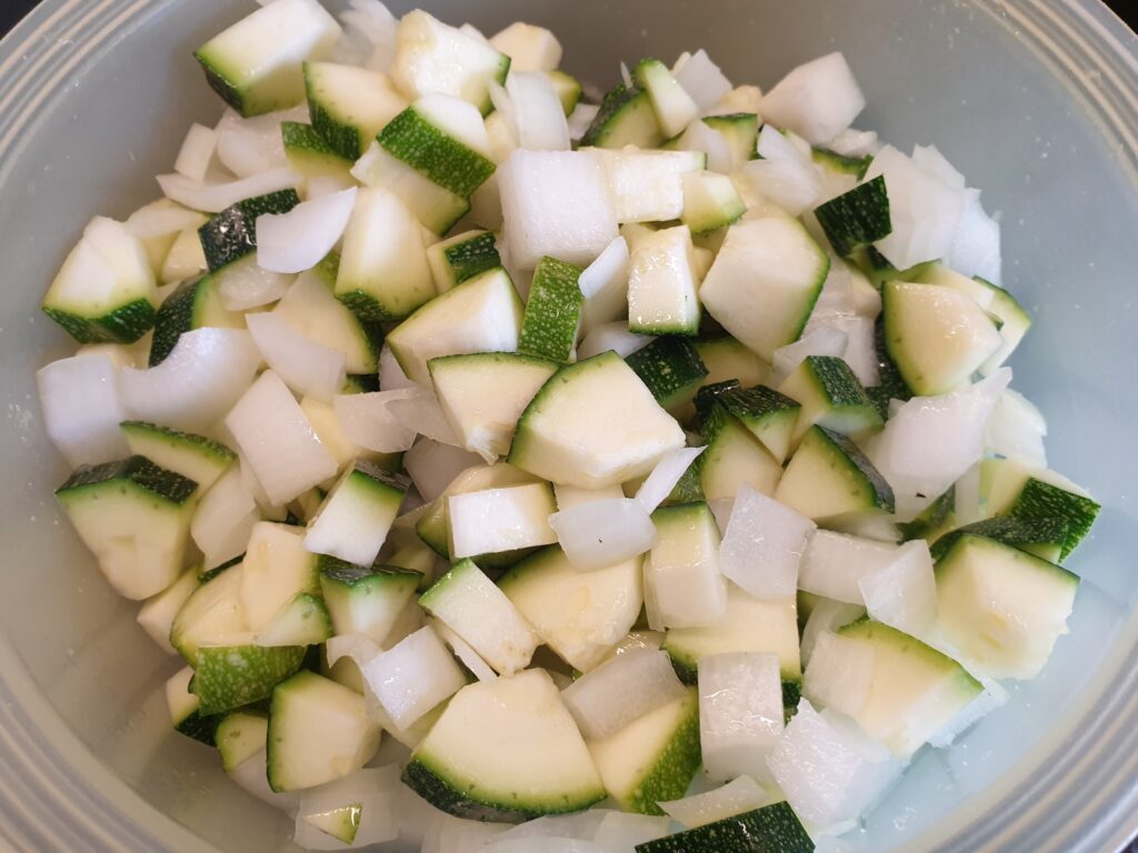 - 1 kg Zucchini, entkernt und in Stücke geschnitten