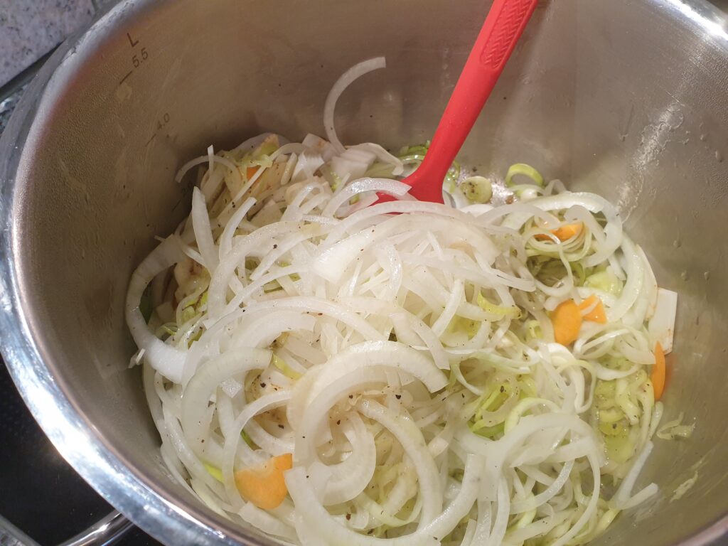 - 1 Gemüsezwiebel, als halbe Ringe geschnitten
