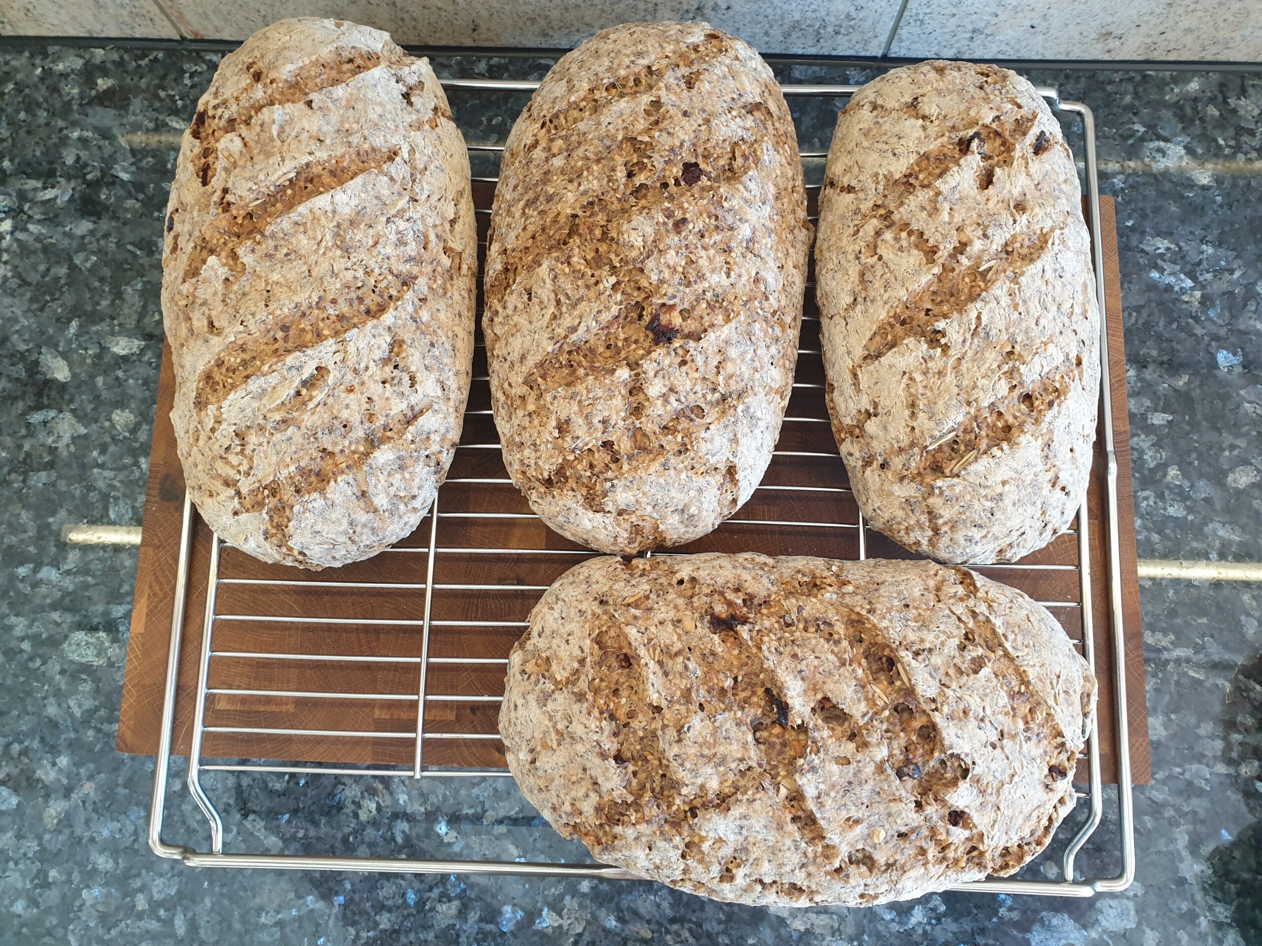 Tipp: Das Brot lässt sich sehr gut einfrieren, wir schneiden vor den Einfrieren die Brotlaibe auf.