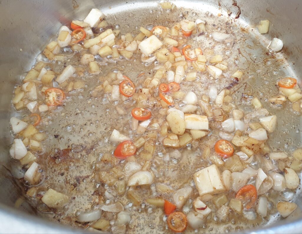 Ein simples und aromatisches Eintopfrezept, das mit Weißbrot, Hirse oder Kuskus, Kartoffeln (Salz-, Pell-, oder Bratkartoffeln) oder Bandnudeln serviert werden kann, – ideal, wenn es draußen kühler wird. Das Fleisch hat einen hohen Bindegewebsanteil, der weich geköchelt werden muss, dann aber einen sehr aromatischen Geschmack abgibt.