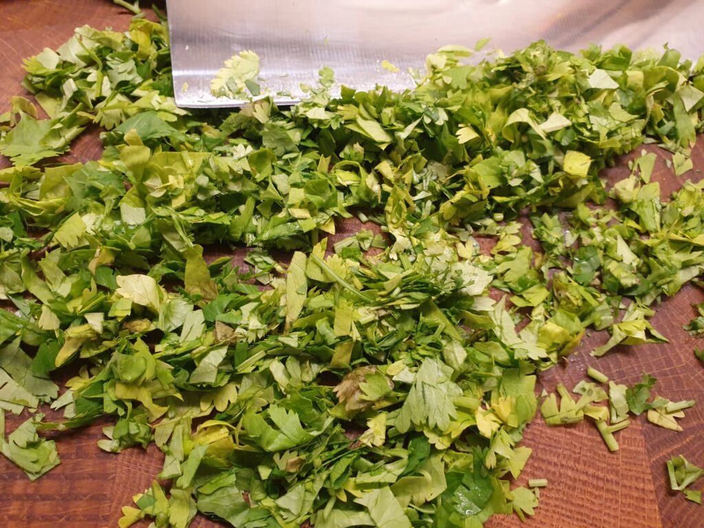 • 1 Bund Koriandergrün, gehackt