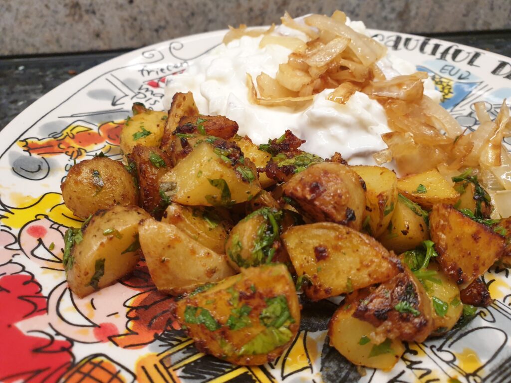 Das Rezept kombiniert unsere Bratkartoffeln mit einer Gewürzmarinade, die im Libanon ihren Ursprung hat. Dort heißen die Bratkartoffeln Batata harra.