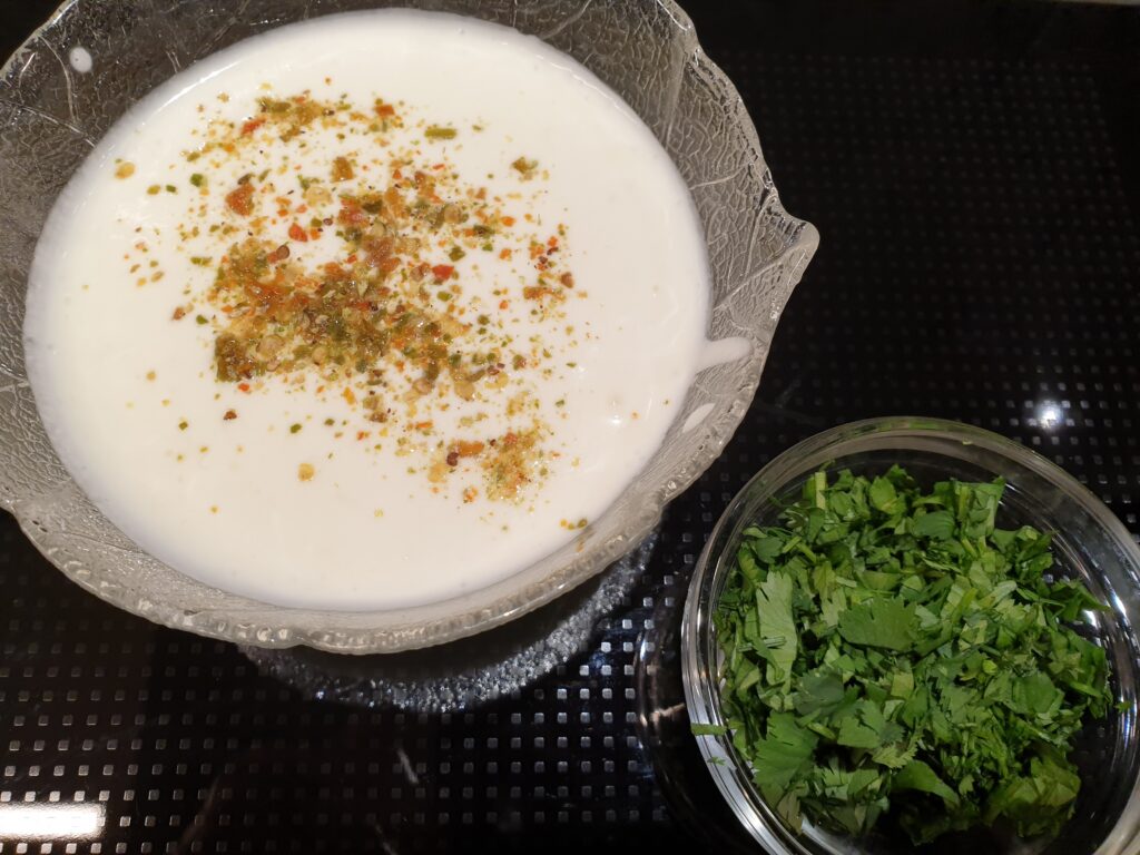 - 3-4 Stängel frischen Koriander, fein gehackt