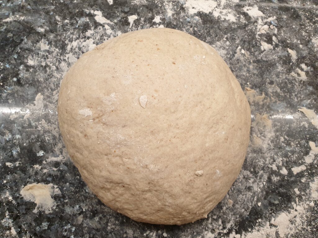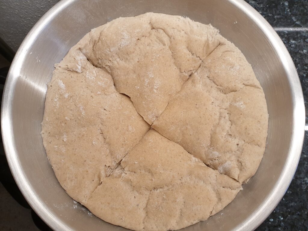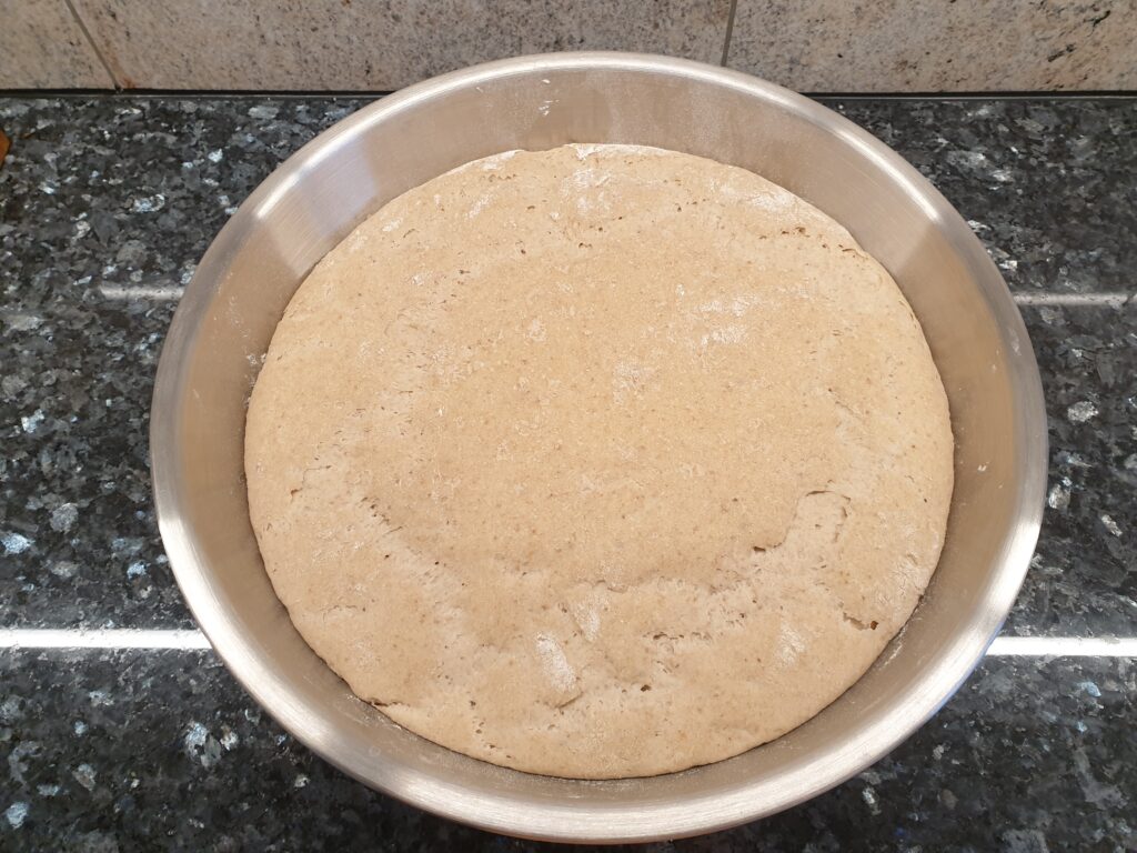 Info: Der Begriff Autolyseteig meint einen Vorteig, eine Mischung aus Mehl und Wasser ohne Zusatz von Hefe, Sauerteig oder auch Salz, der mindestens 30 Minuten ruhen muss (Ruhezeit zeit etwa 1/4 der eingesetzten Mehlmenge). Nach dem raschen Verrühren von Wasser und Mehl kommt es zum Verquellen, so wird ein Teil der Stärke aufgeschlossen und das Eiweiß im Mehl zu einem stabilen Netz verbunden. Dies später eine positive Wirkung auf das Teigvolumen, es führt auch es zu einer schöneren Kruste. Speziell Teige mit höherem Dinkelanteil mögen dieses Verfahren.