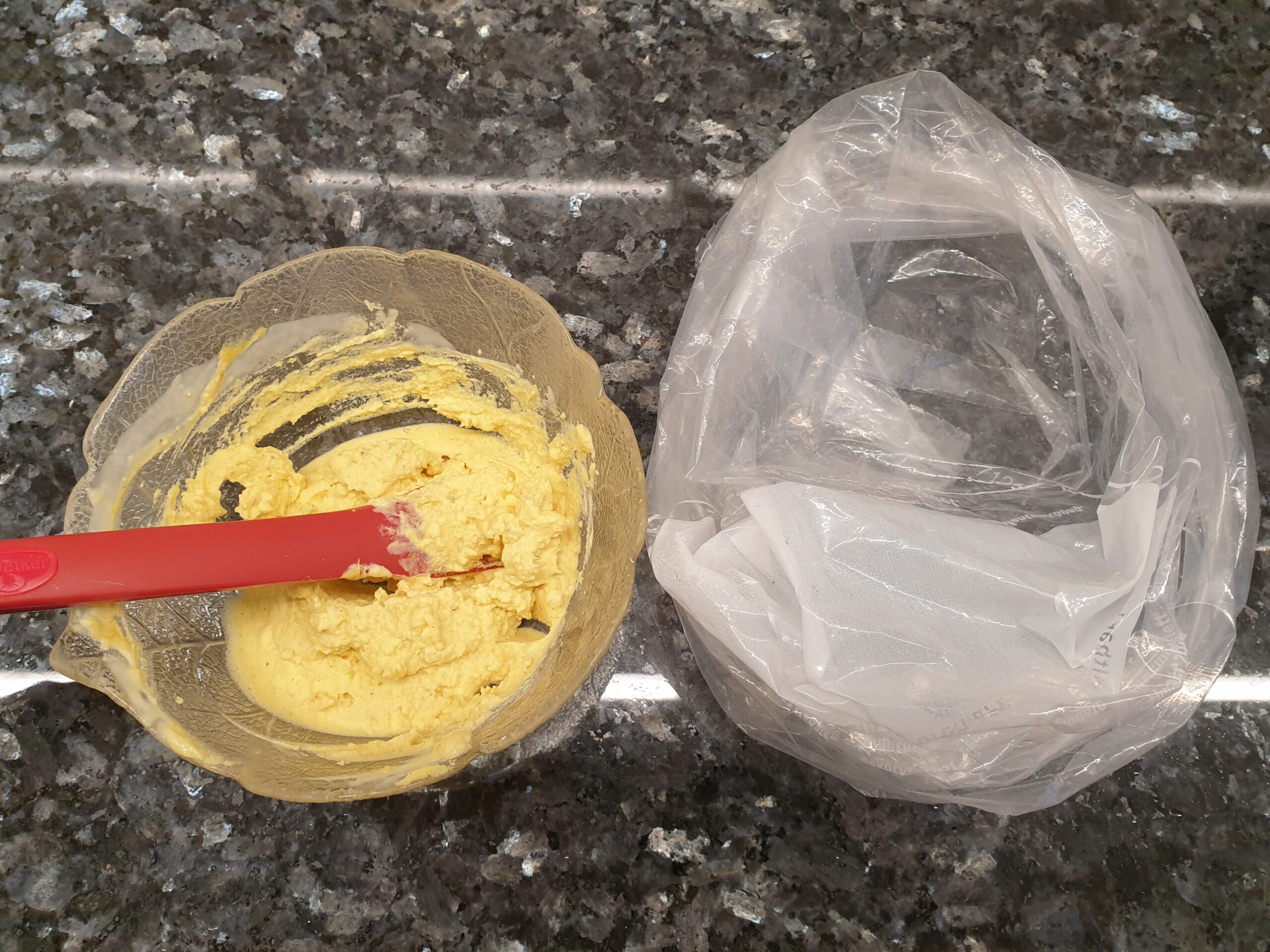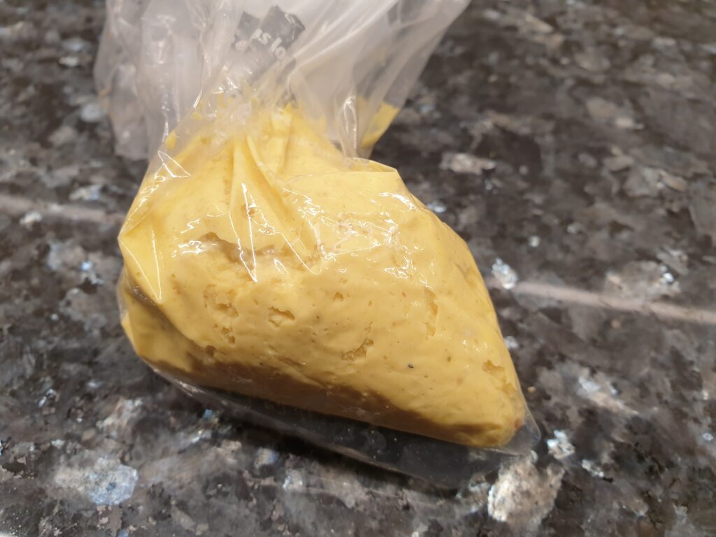 Eigelb mit einer Gabel fein zerkleinern, Mayonnaise hinzugeben. Mit einem Silikonspachtel die Mischung etwa 1-2 Minuten immer wieder an der Schalenwand zerkleinern, bis eine glatte Paste entstanden ist. Jetzt die übrigen Zutaten zugeben und weiter durcharbeiten, bis die Masse fein glatt und gleichmäßig gemischt ist.
