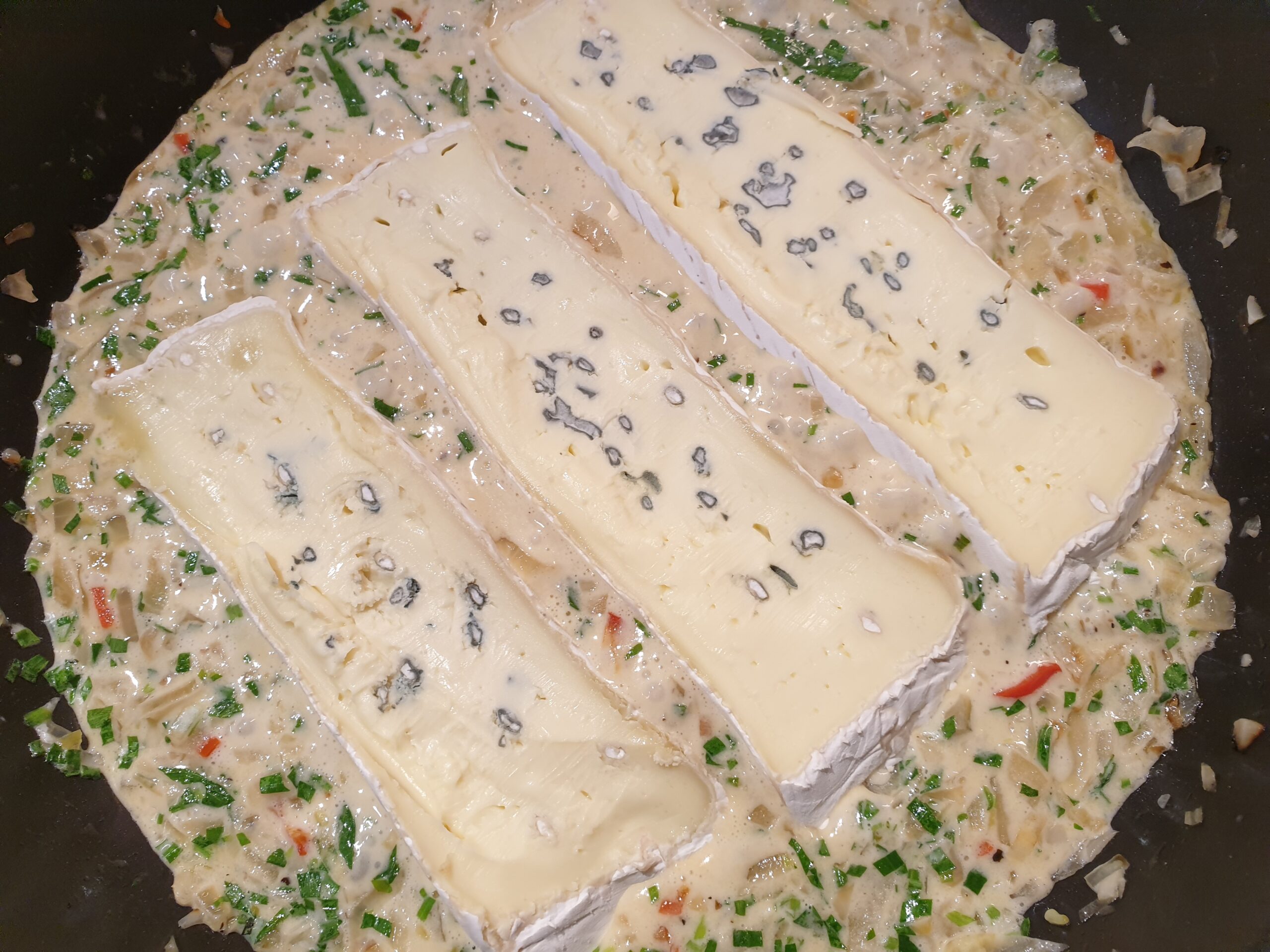 - 100 g Blauschimmelkäse oder z.B. eine Mischung aus 60 g Frischkäse und 60 g Parmesan, frisch gerieben