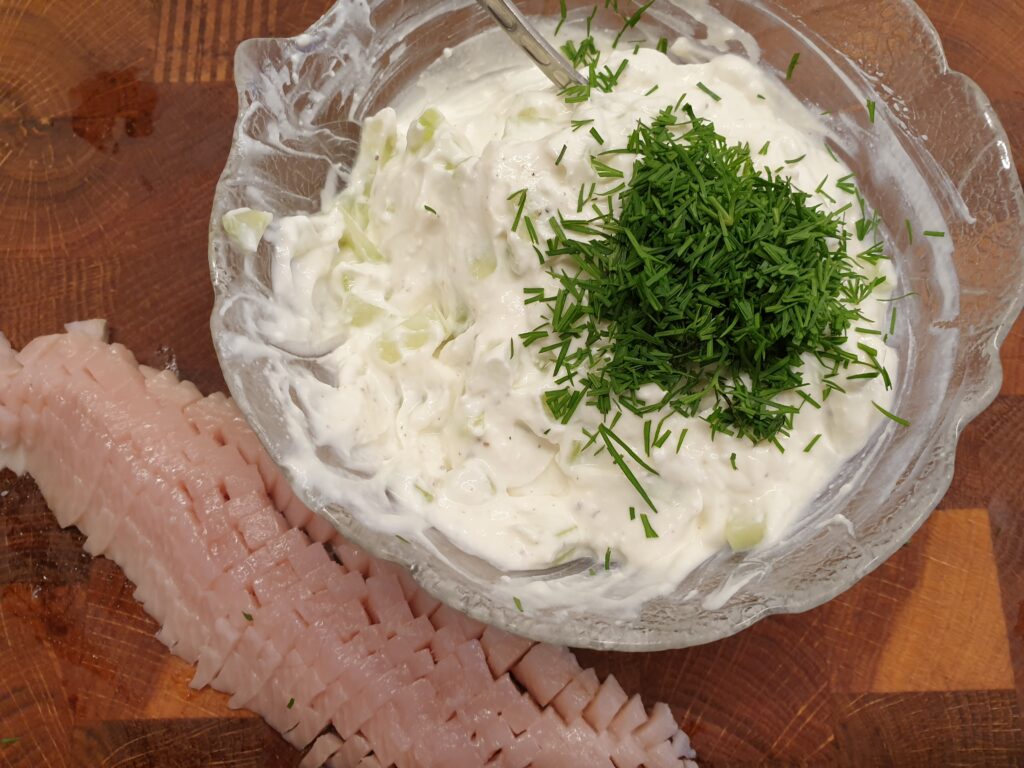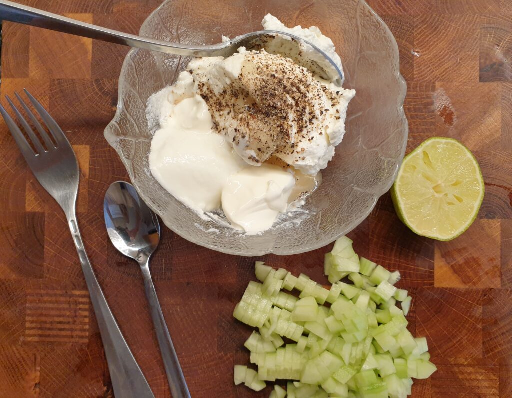 - ¼ Salatgurke, geschält, Inneres entfernt und fein gewürfelt
