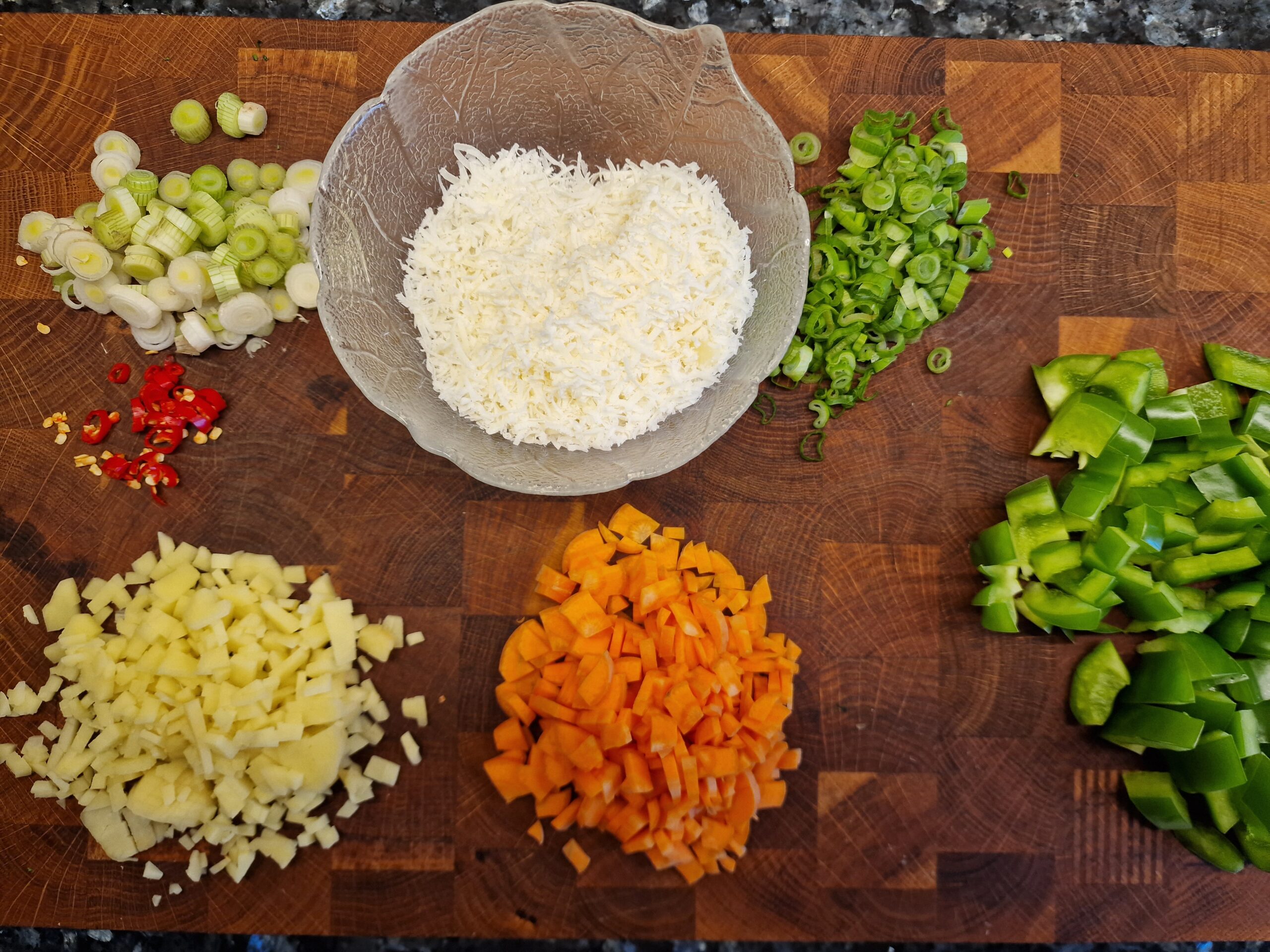- optional: 1 Chili, fein geschnitten (- dann aber keinen Pfeffer zugeben)