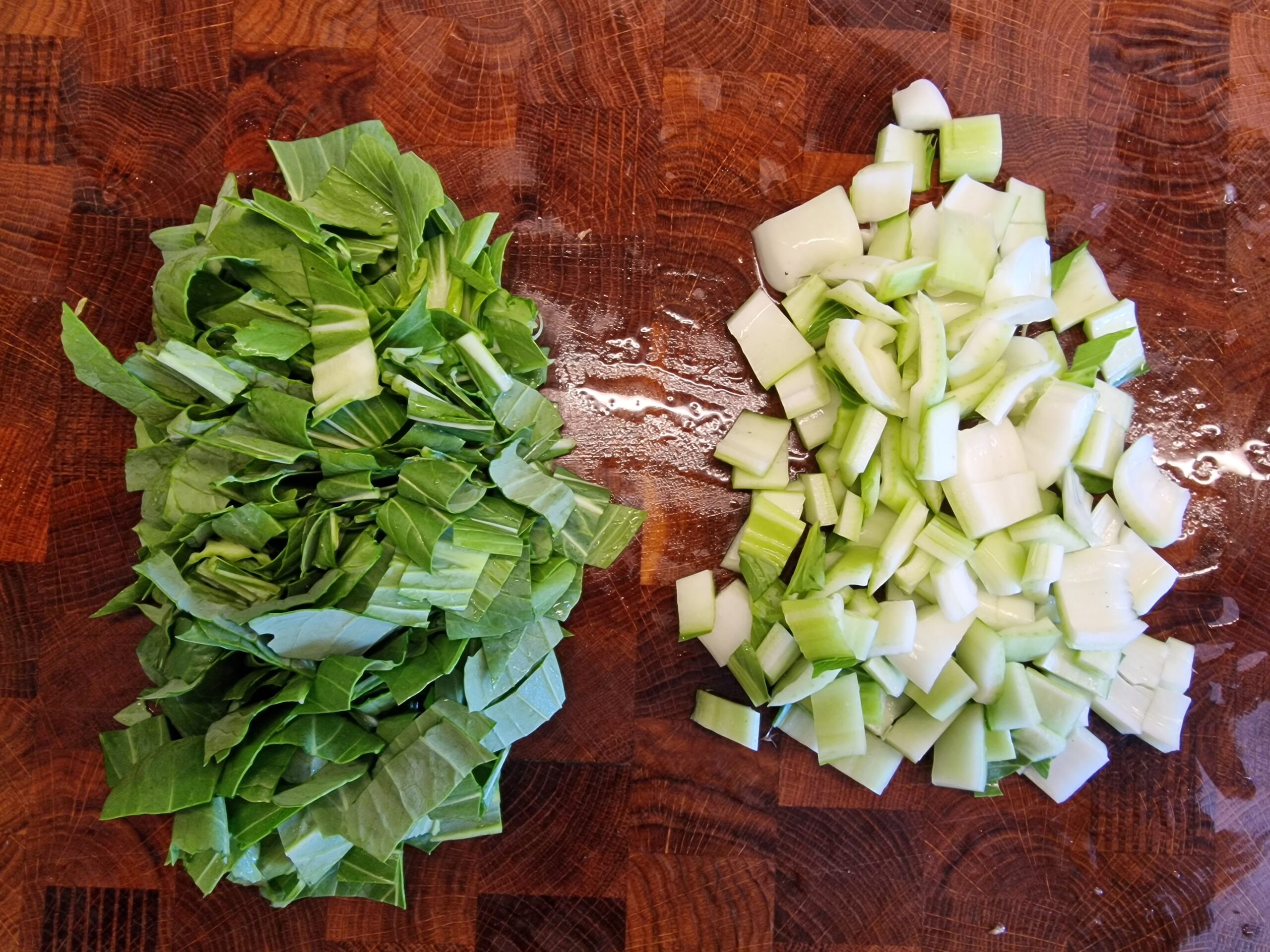 - 500 g Pak Choi, gewaschen, ohne Strunk, Blätter mundgerecht zerkleinert