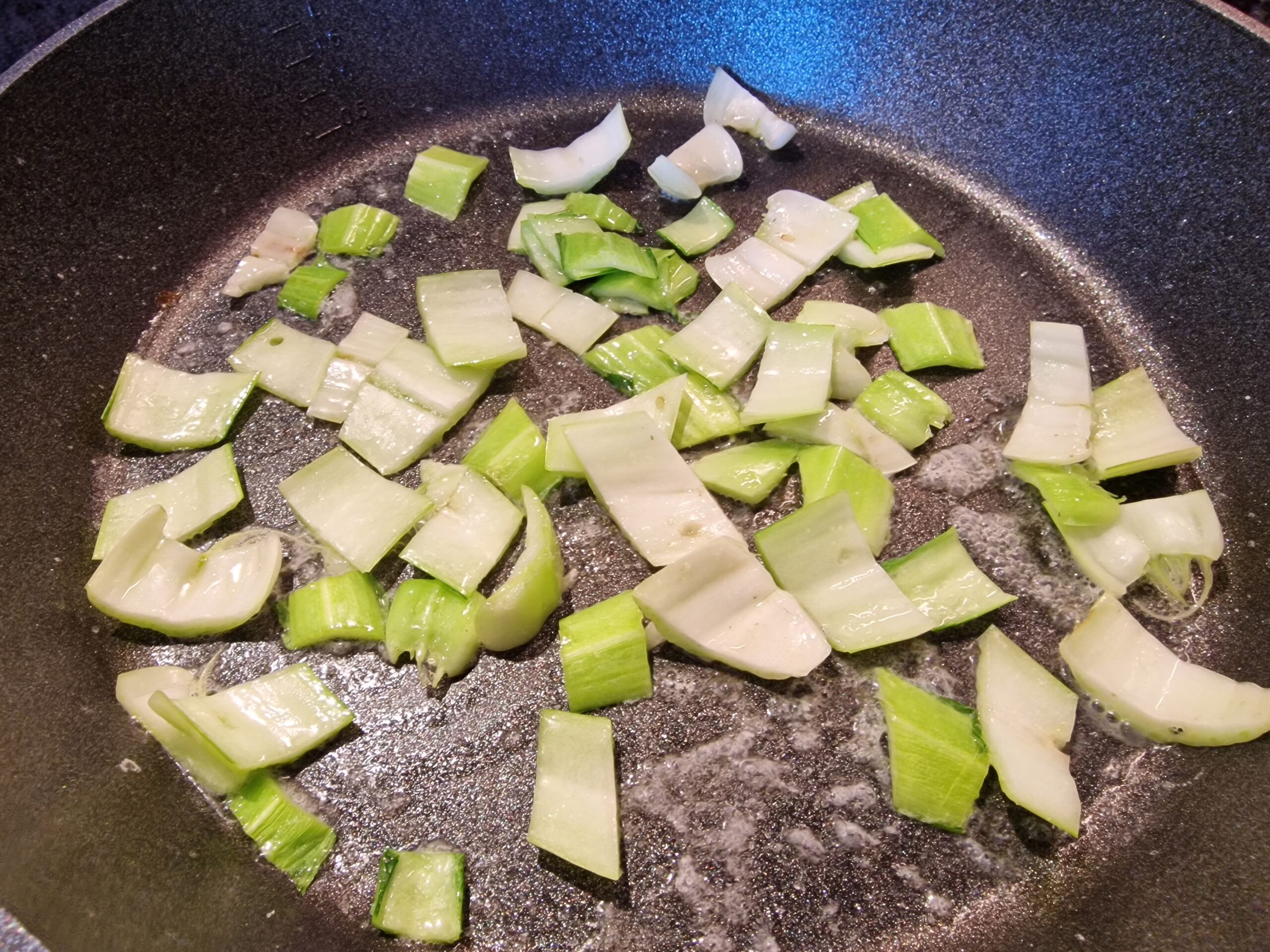Pak Choi Blätter vom Strunk trennen, waschen, trocknen und die Blätter ohne Stiele zerkleinern. In kochendem Salzwasser die Blätter eine Minute blanchieren, abgießen und mit Salz und Zitronensaft würzen.