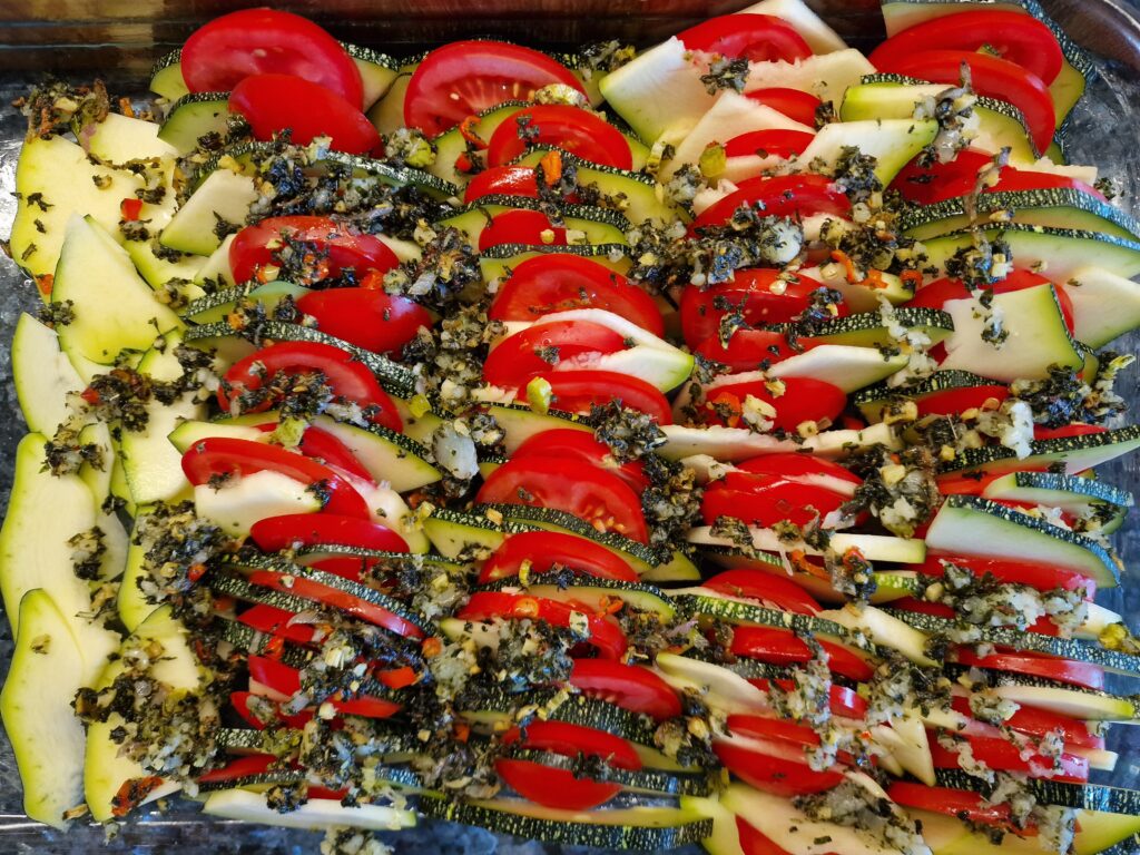 Eine frische vegetarische Auflaufvariante für Zuchini und Tomaten für warme Tage.