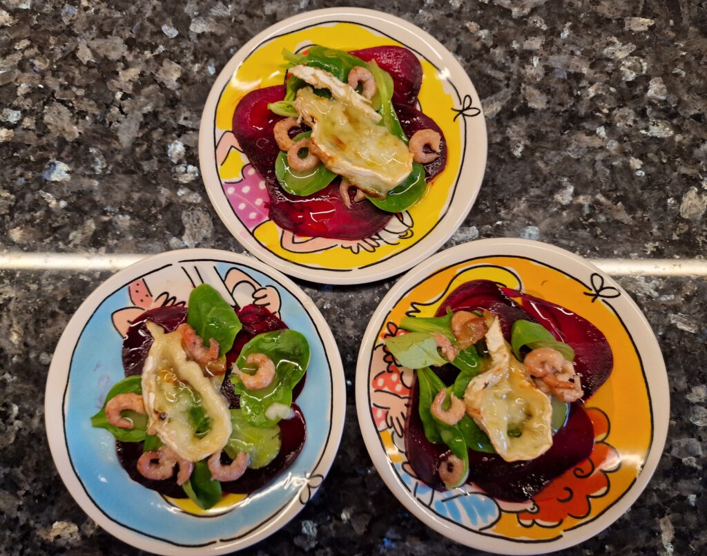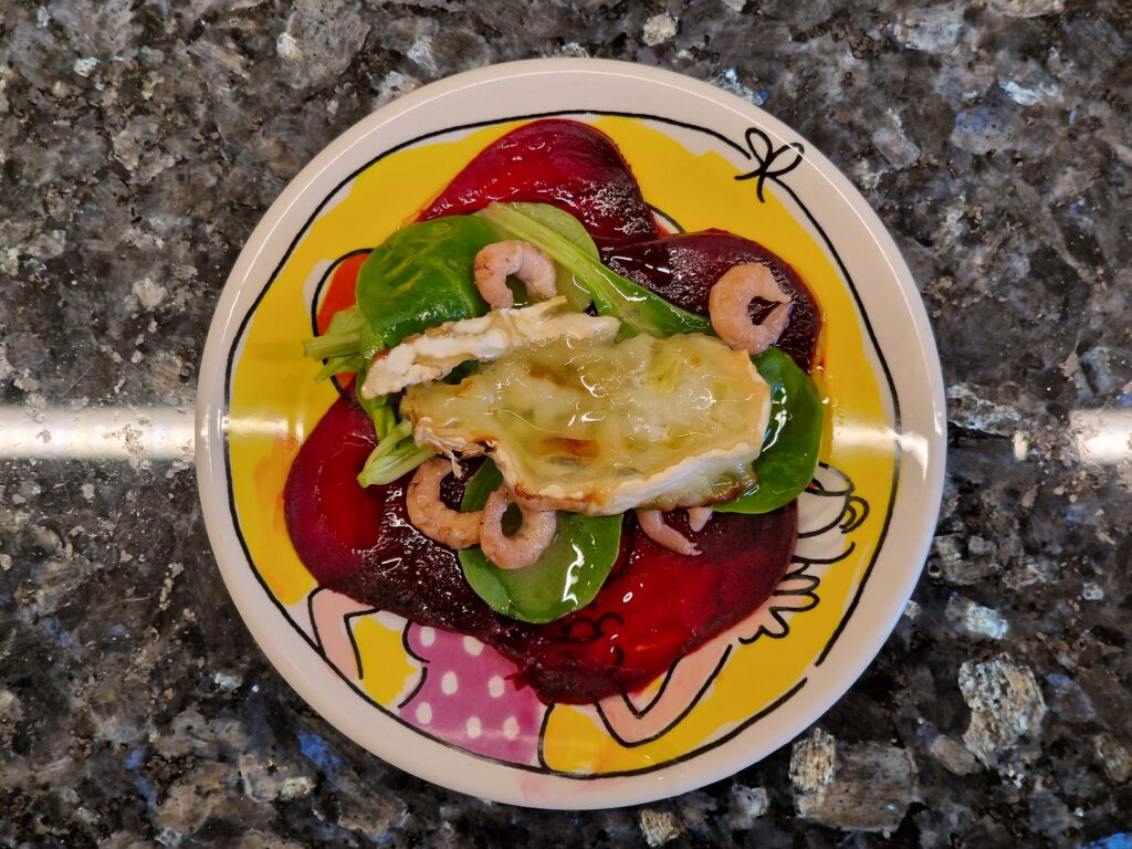 Rote Beete aus eigener Gartenernte nach Annes Empfehlung als Vorspeisenvorschlag – mit Ziegenkäse und Honig.